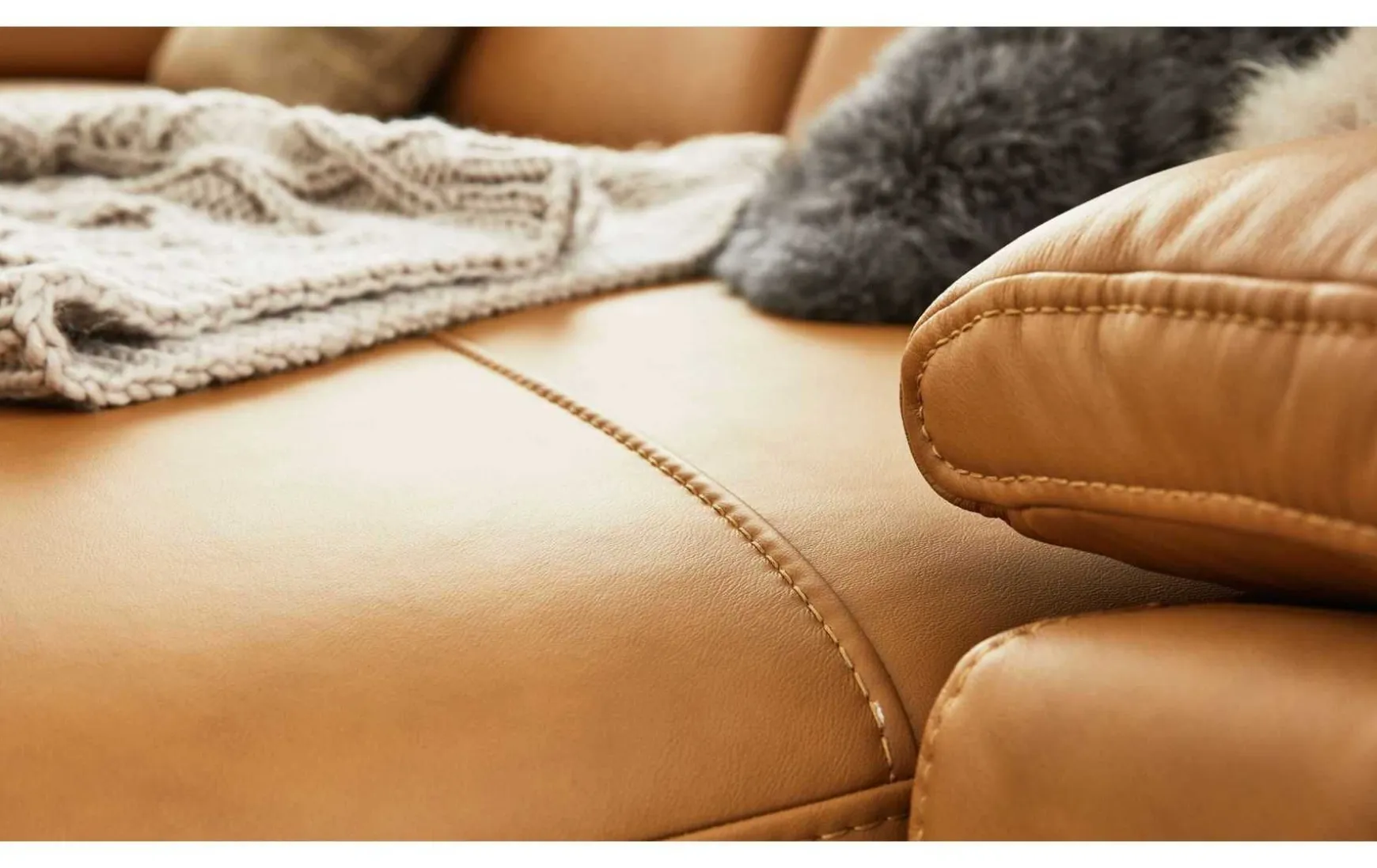 Dieses Ecksofa von Hukla zeichnet sich durch sein modern-elegantes Design und die hochwertige Verarbeitung aus. Dank des voll durchgeschäumten Federkerns und der drei preisgleich erhältlichen Sitzhärten genießen Sie auf der edlen Ledercouch angenehm festen Sitzkomfort. Dazu trägt auch der Rücken mit Kaltschaumpolsterung bei. Das Glattleder mit feiner Lederstruktur und softem Griff wird Sie begeistern. Die Sitzhöhe beträgt ca. 46 cm, bei einer Sitztiefe von ca. 53 cm. Insgesamt hat die Ledercouch eine Stellfläche und ein Schenkelmaß von ca. 347 x 176 (LxB, von links nach rechts).
