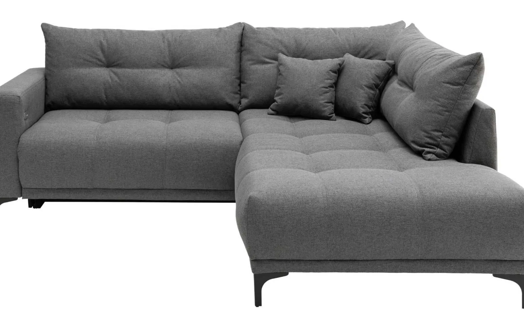 Die moderne Polsterecke in Anthrazit Grau vereint Komfort und stilvolles Design in einem eleganten 2-Sitzer. Mit elektrischer Sitzverstellung und Ottomane auf der rechten Seite passt sie perfekt in moderne Wohnzimmer. Der Sitzkomfort wird durch hochwertigen Komfortschaum auf Wellenunterfederung gewährleistet, während die Sitzhöhe von 43 cm ein bequemes Ein- und Aussteigen ermöglicht. Die schwarzen Metallfüße unterstreichen das zeitgemäße Design und sorgen für Stabilität. Ob als entspannter Rückzugsort oder Mittelpunkt des Wohnbereichs – diese Polsterecke verbindet Funktionalität mit ästhetischem Anspruch.