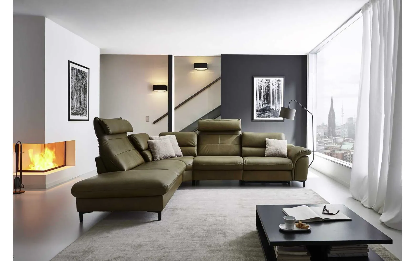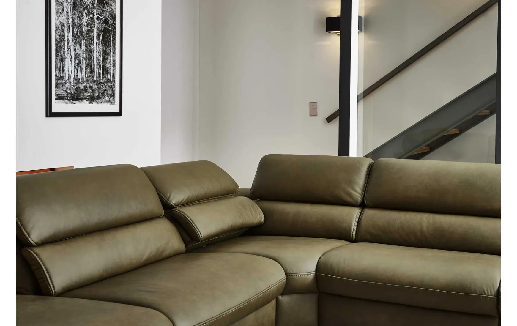 - Gegen Mehrpreis erhältlich: Rücken echt, Armlehnen verstellbar, Anstellhocker klappbar, Relaxrücken