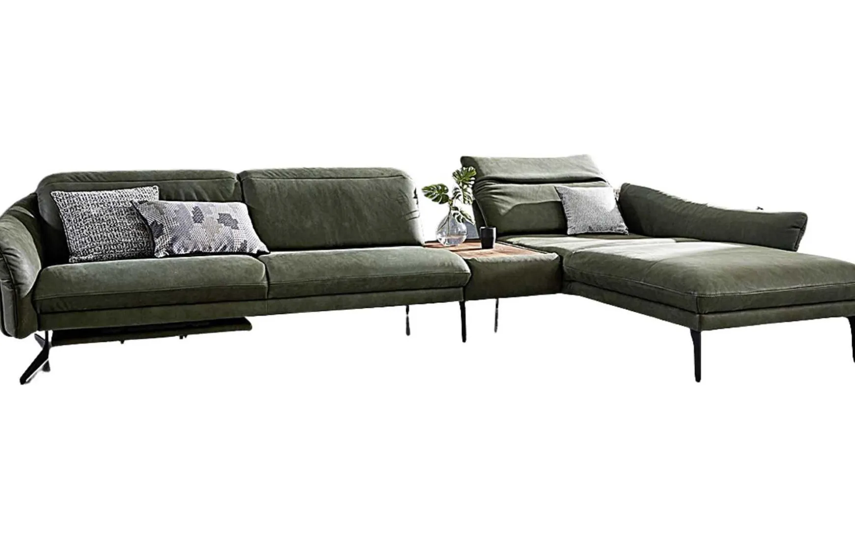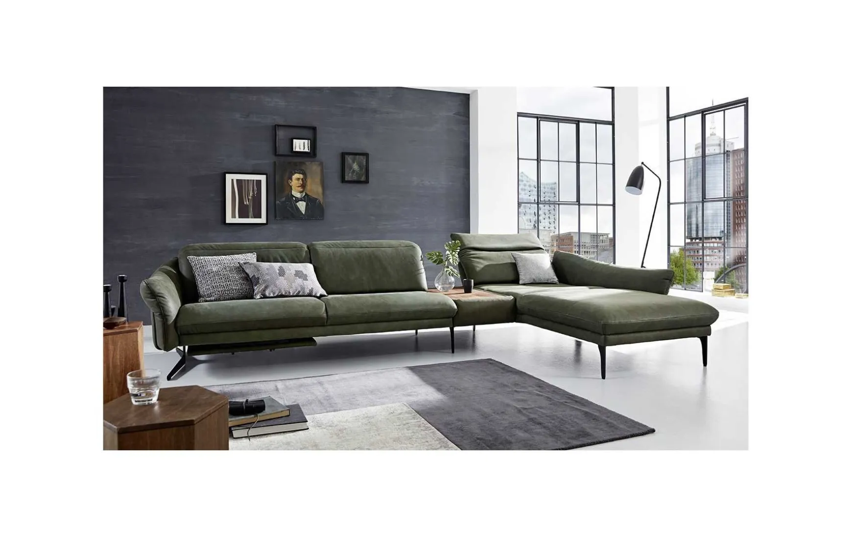 Die Polsterecke ist ein absolutes Highlight für Ihr Zuhause. Das schicke Design lädt zu schönen Abenden zusammen mit Ihren Liebsten ein und wertet dabei Ihren Wohnbereich perfekt auf. Die mit einem Lederbezug in der Farbe Stahlgrün bezogene Couch (inkl. Rücken) besteht aus einem 2,5-Sitzer mit Armteil rechts, einem Zwischentisch in Wildeiche Beizton roh matt, sowie einer Abschlussrecamiere mit langem Seitenteil links. Die anthrazitfarbigen, pulverbeschichteten Metallfüße sorgen dabei für einen schicken Kontrast der das Design perfekt abrunden wird. Die Couch ist mit einer manuellen Sitztiefen- und Kopfteilverstellung ausgestattet. Der benötigte Wandabstand beträgt ca. 36 cm, die Sitzhöhe ca. 45 cm. Der Superlastic Sitz in medium sorgt dabei für hinreißenden Komfort.