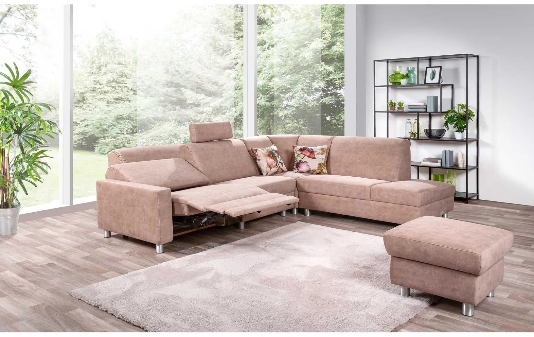 - Gegen Mehrpreis erhältlich: Relaxfunktion, Hocker, Stauraum für Hocker, Kopfstütze, Rücken echt, Softkissen 40×40 cm
