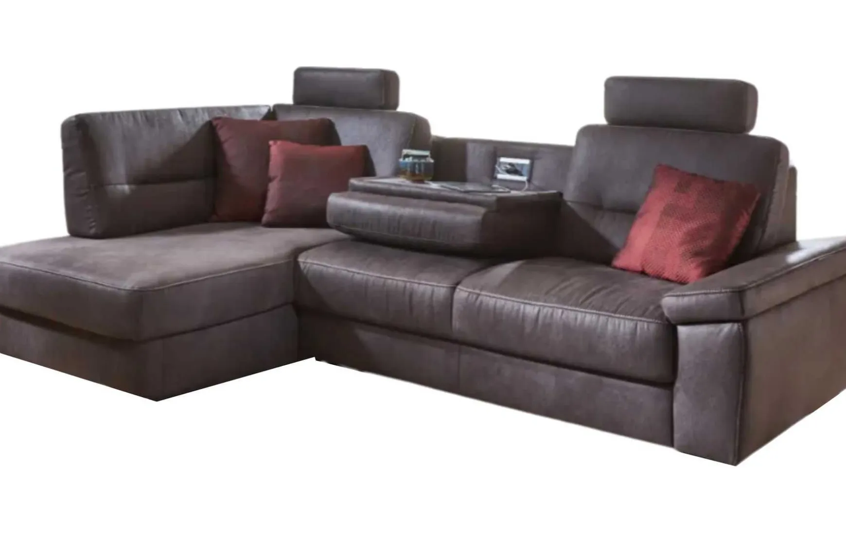 - Gegen Mehrpreis erhältlich: Rücken echt, Bettfunktion, Stauraum, Ablage mit Steckdose, Kopfstütze, Kissen