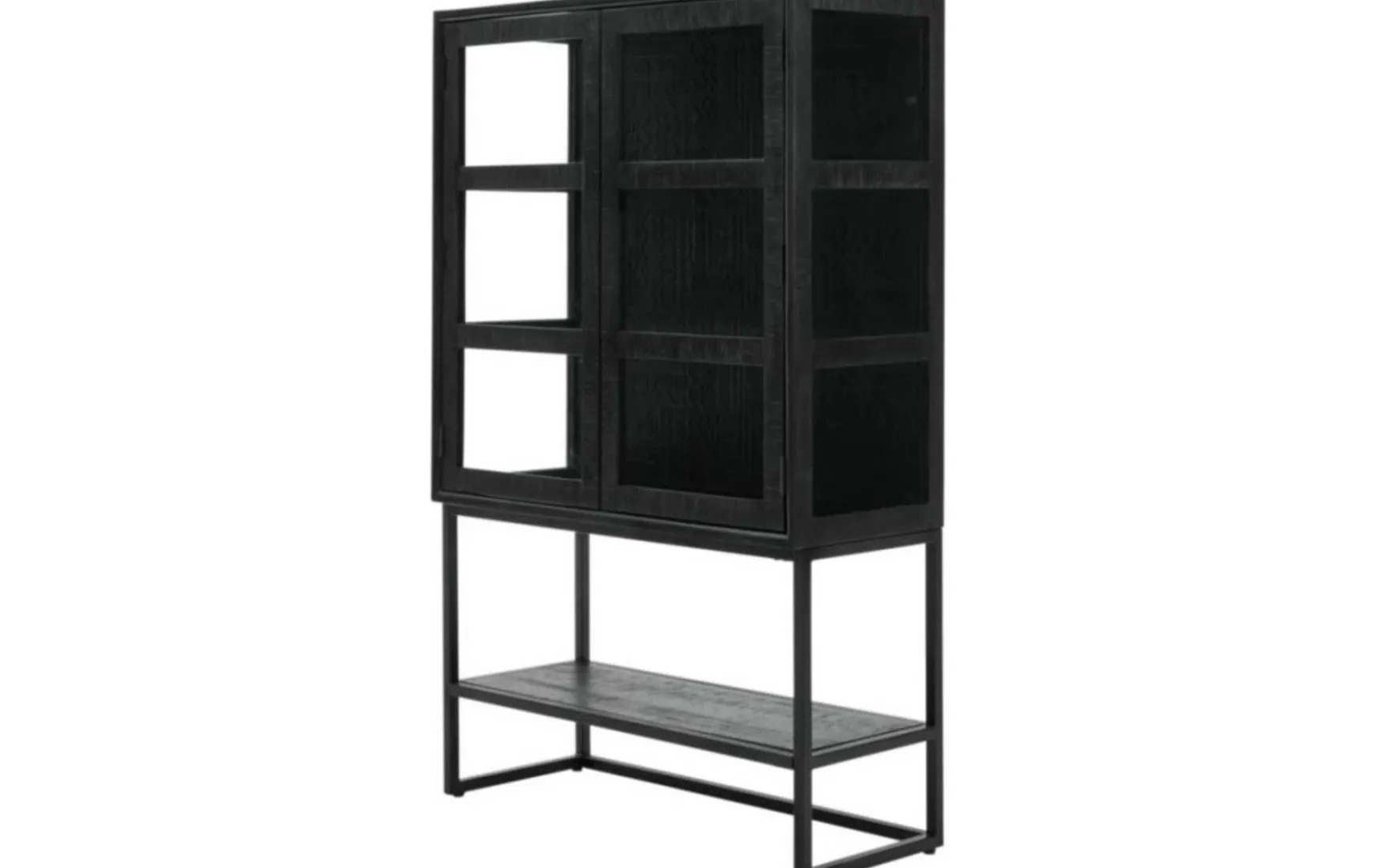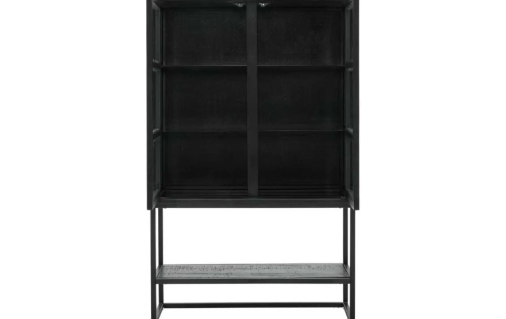 Der besondere Style der Vitrine in den Maßen 100 x 160 x 42 cm (B x H x T) verleiht deinem Interieur das gewisse Etwas. Dazu verleihen die schwarz lackierten Füße aus Metall der Vitrine eine stilvolle Note. So wird jeder Raum zu einem Wohlfühlort.