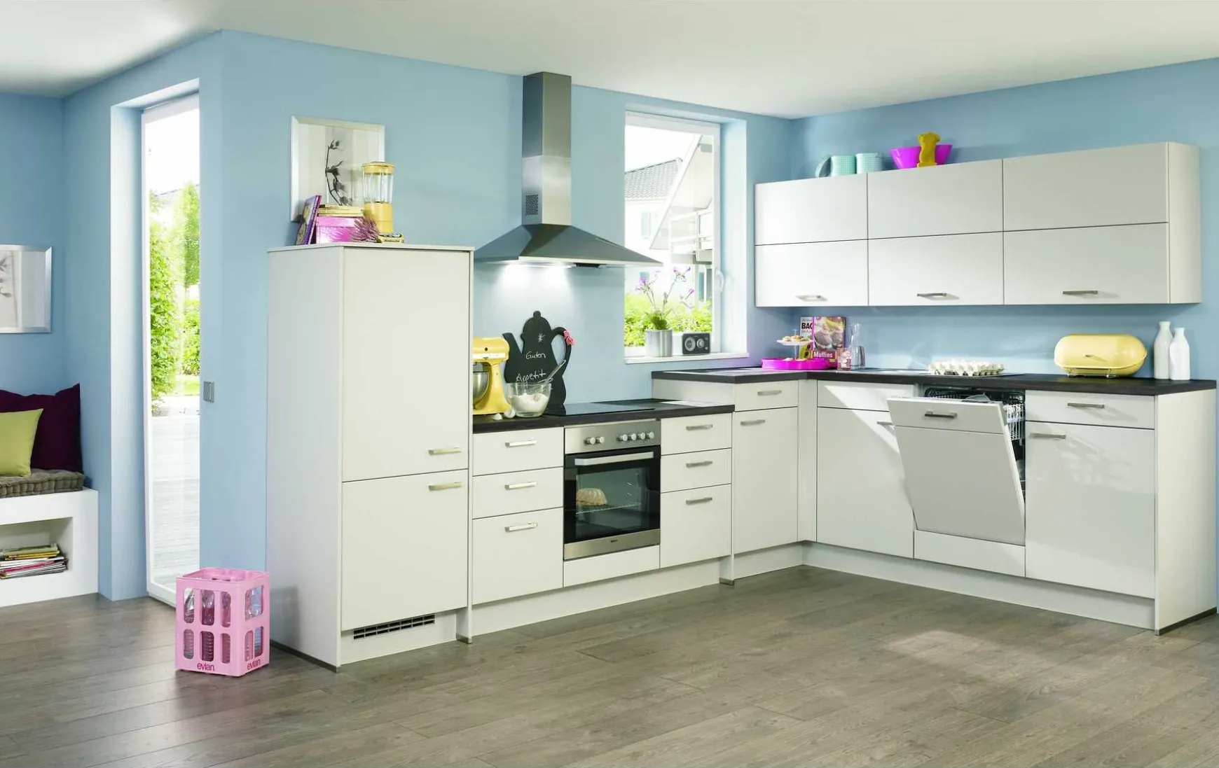 - Nicht im Preis enthalten: Abgebildete Dekoration, Geschirrspüler, Kohlefilter und Armatur