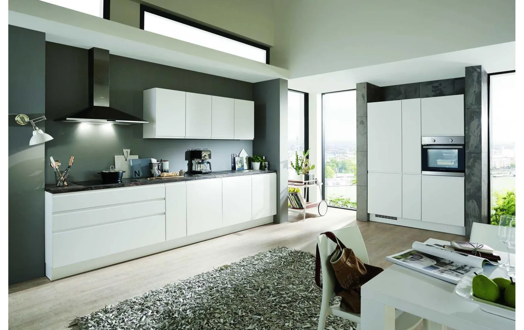 - Nicht im Preis enthalten: Abgebildete Dekoration, Esszimmermöbel, Geschirrspüler, Kohlefilter und Armatur
