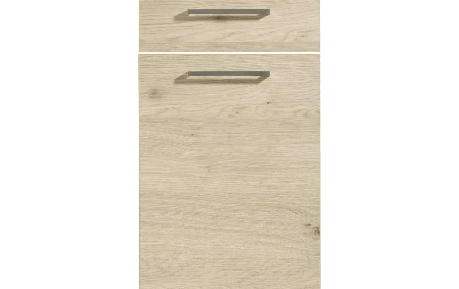 Dank der grifflosen Fronten wird ein sehr harmonisches Bild geschaffen. Unterstützt wird die moderne Struktur durch die zweifarbige Ausführung der Fronten und Korpusse. Durch den hochgestellten Backofen bleibt auch der Komfort nicht auf der Strecke.