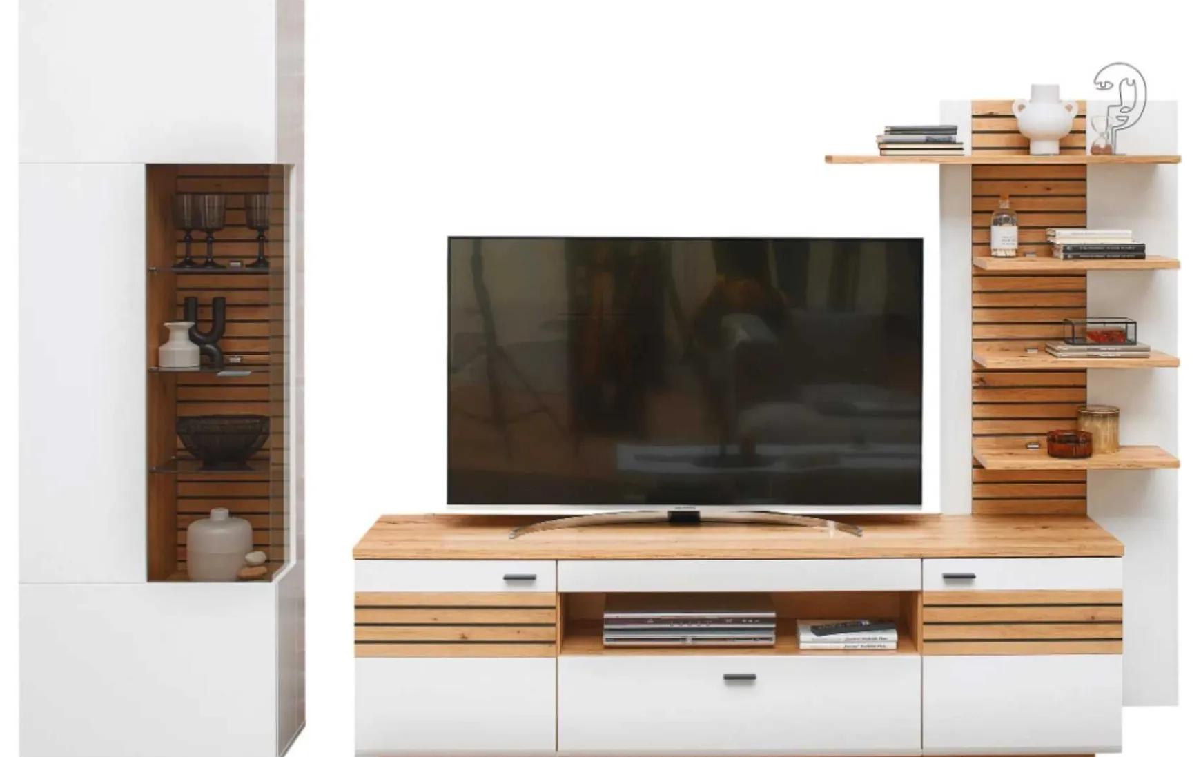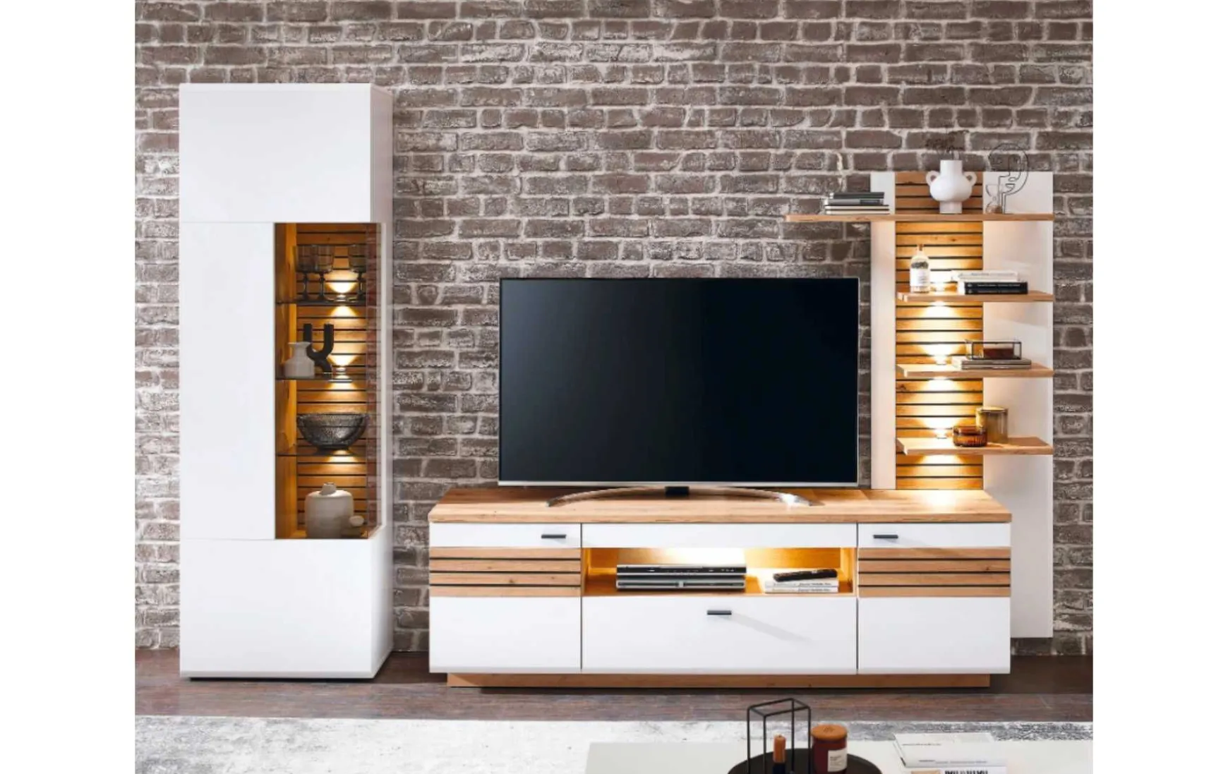 - Im Preis enthalten: TV-Bank, Vitrinenschrank, Wandregal
