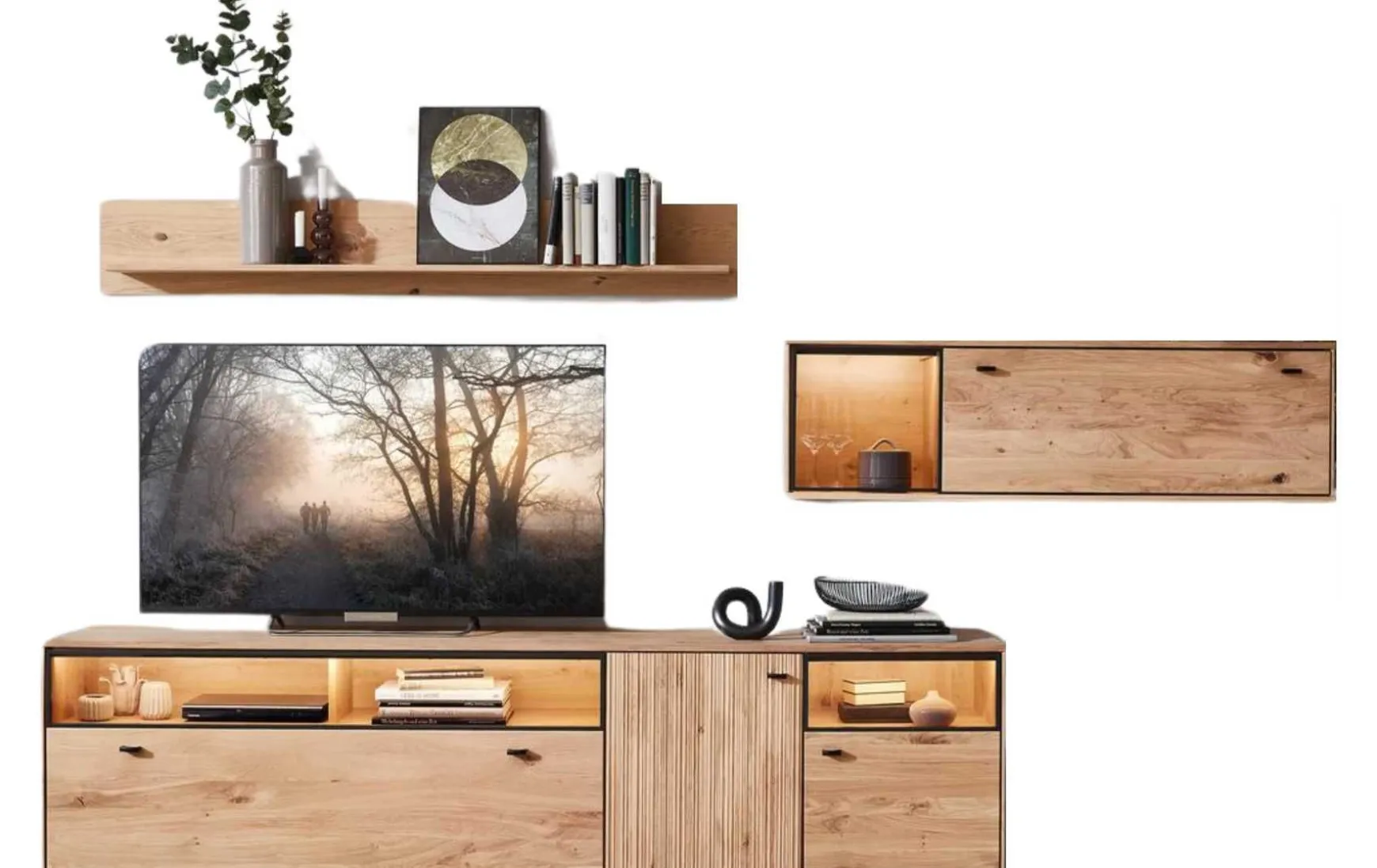 - Im Preis enthalten: Lowboard, Hängeschrank, Wandboard, LERD Beleuchtung