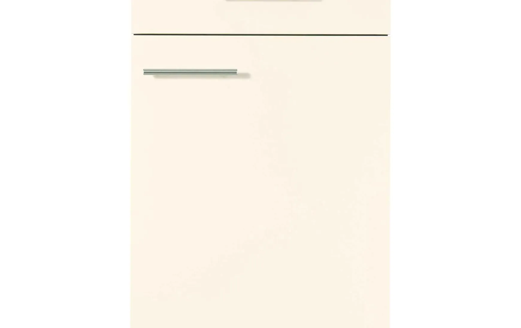 Die Küchenzeile von Impuls präsentiert sich in einem aufregend dunklen Gewand. Verbindendes Element ist hierbei die Farbgebung in Beton Optik natur. Beton Optik natur ziert die Fronten der unteren Schränke und des Hochschranks und der Korpus ist in Graphit designt. Ein Kühlschrank in ergonomischer Höhe sowie eine komplette weitere E-Geräte-Ausstattung verleihen der Küche alltagstaugliche Funktionalität.