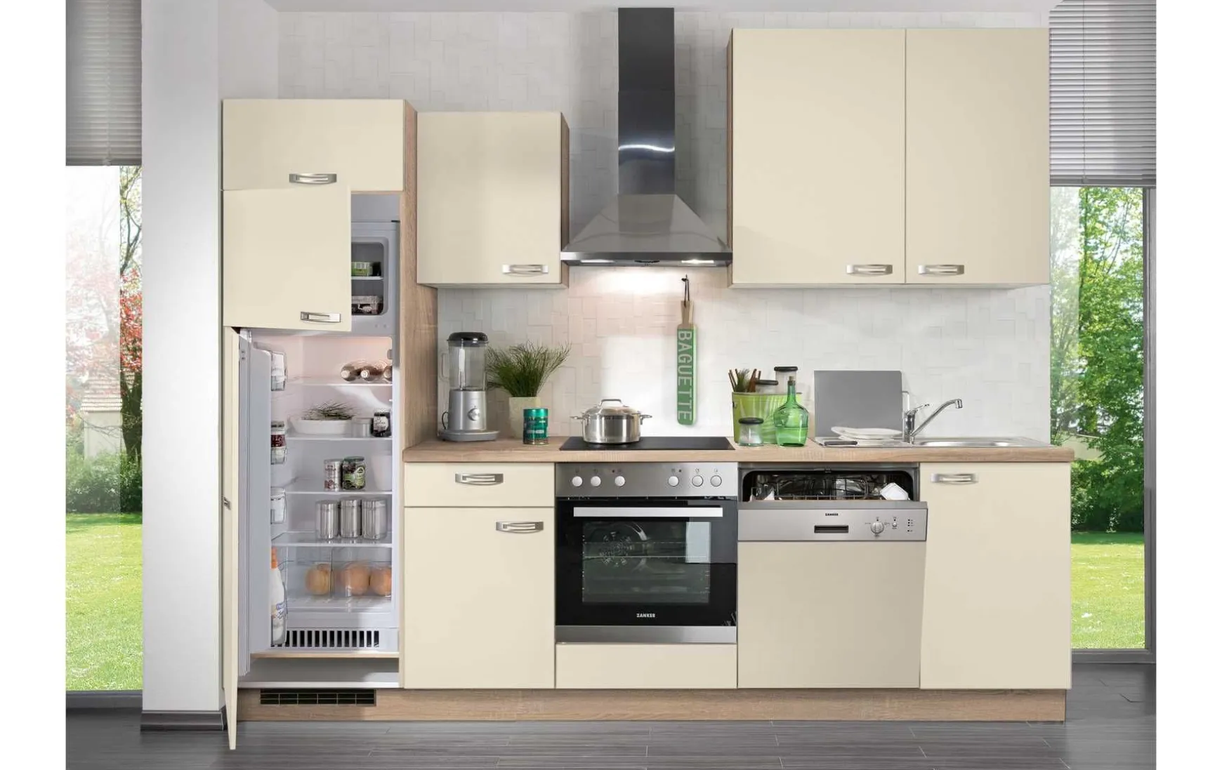 Optimale Ausnützung des vorhandenen Raumes bietet Ihnen diese Küchenzeile. Sehr flexibel gestaltet sich der Leerblock mit dem Hochschrank und den Hängeschränken. In den Ober- und Unterschränken bringen Sie sowohl Ihr Besteck und Ihr Geschirr unter. Gestalten Sie mit Ihren gewünschten Geräten eine tolle Küche, die sich jedem Raum anpasst.