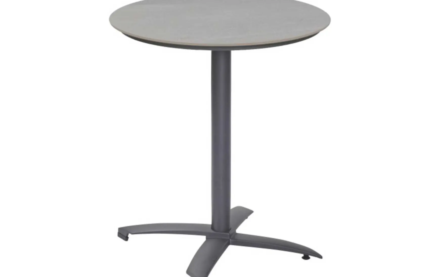 Der Bistrotisch mit einer runden Sintered-Stone-Platte in Grau und einem stabilen Aluminiumgestell in Anthrazit besticht durch sein modernes Design, ist wetterfest und pflegeleicht und bietet mit einem Durchmesser von ca. 70 cm und einer Höhe von 74 cm die perfekte Kombination aus Stil und Funktionalität für Innen- und Außenbereiche.