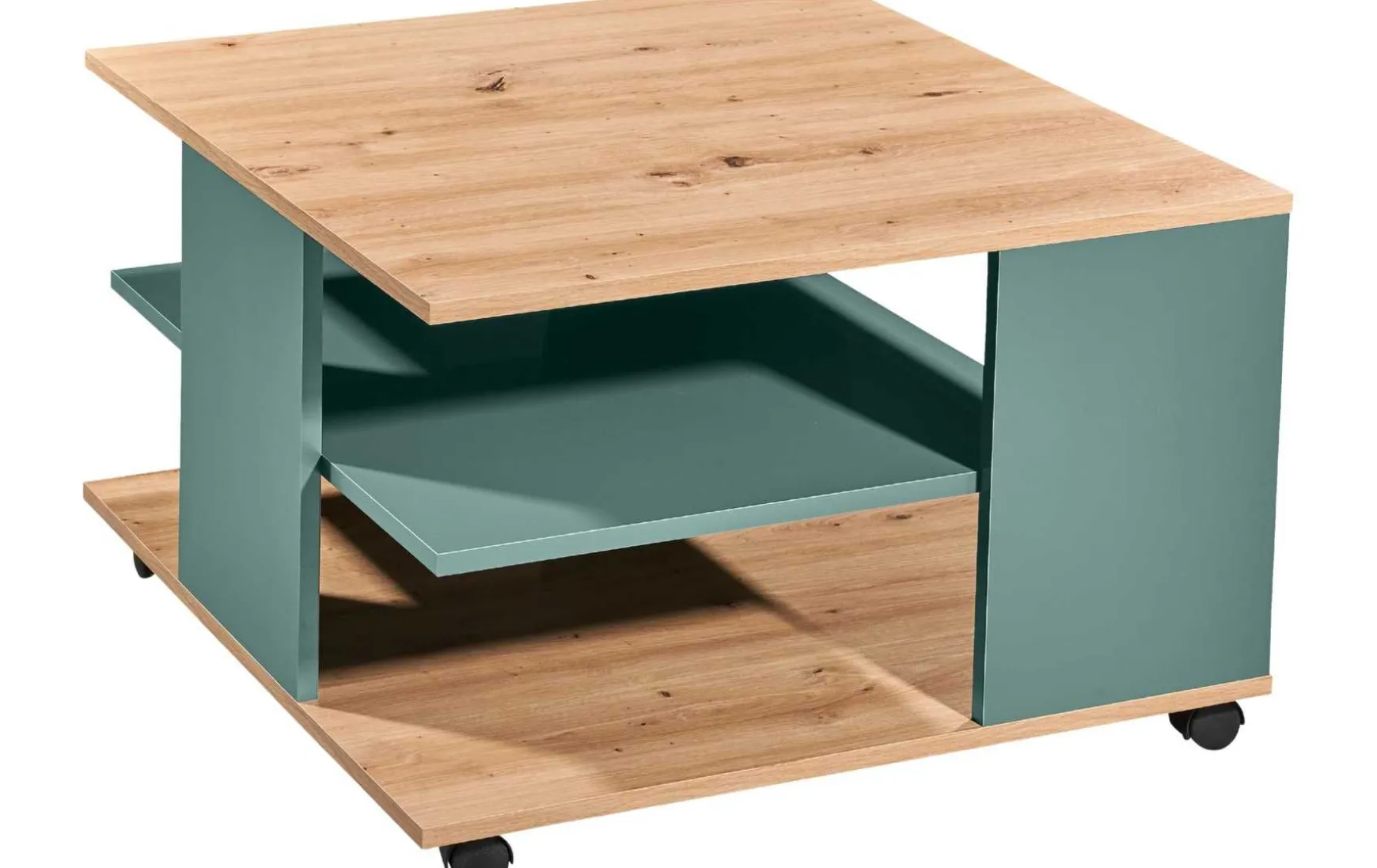 Dieser moderne Couchtisch überzeugt durch seine praktische Ausstattung und sein zeitgemäßes Design. Dank integrierter Rollen lässt er sich flexibel im Raum bewegen, während die zusätzliche Zwischenablage Platz für Zeitschriften, Fernbedienungen oder Deko bietet. Die harmonische Farbkombination aus Artisan Eiche und Salbei verleiht dem Tisch eine natürliche Optik, gefertigt aus pflegeleichtem Holzwerkstoff und zerlegt geliefert.