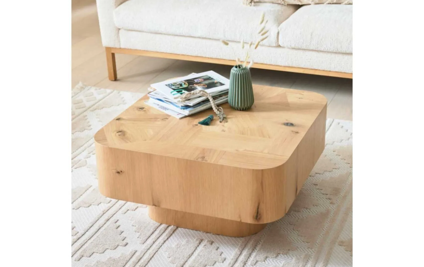 Mit diesem Couchtisch setzt Du einen besonderen Akzent in deinem Zuhause. Der außergewöhnliche Stil des Couchtisches aus Eiche Echtholzfurnier mit den Abmessungen 35 cm (H) ist die perfekte Ergänzung für deine Einrichtung. Dazu verleihen die natur-farbenen Tischplatte und die Beine aus Eiche Echtholzfurnier dem Couchtisch eine stilvolle Note. So wird jeder Raum zu einem Wohlfühlort.