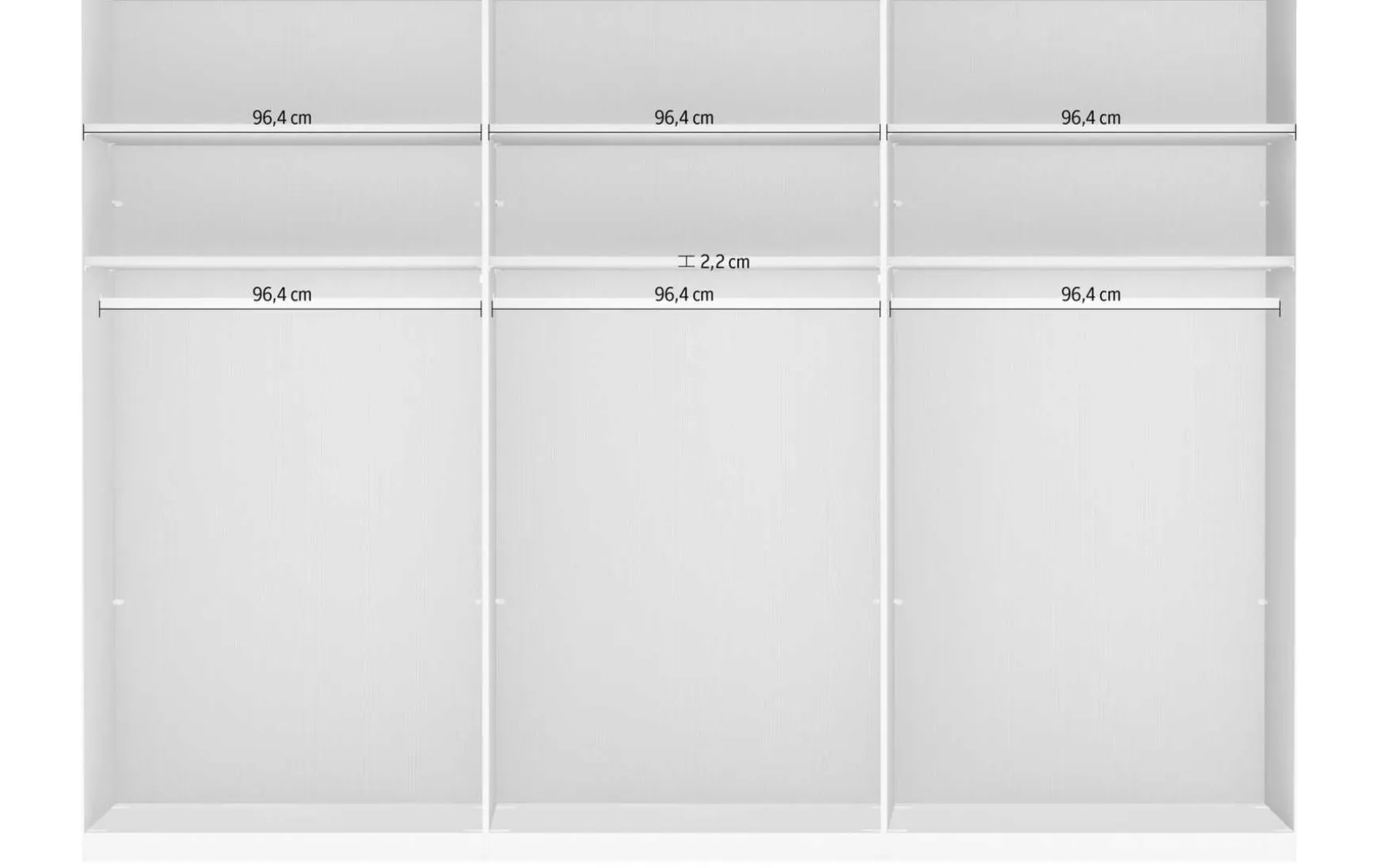 Dieser moderne 6-türige Drehtürenscharnk wird sie nicht nur durch sein äußeres Design überzeugen sondern auch durch seine Funktionalität. Seine 3 großen Kleiderstangen mit einer Länge von je 96,4cm und einer Tragkraft von je 40kg, die 6 großen Einlegeböden mit einer Tragkraft von je 20kg und den Maßen: lange: 96,4 und Stärke 2,2cm bieten jede Menge Stauraum. Seine 6 Drehtüren sind mit türdämpfung ausgestattet.