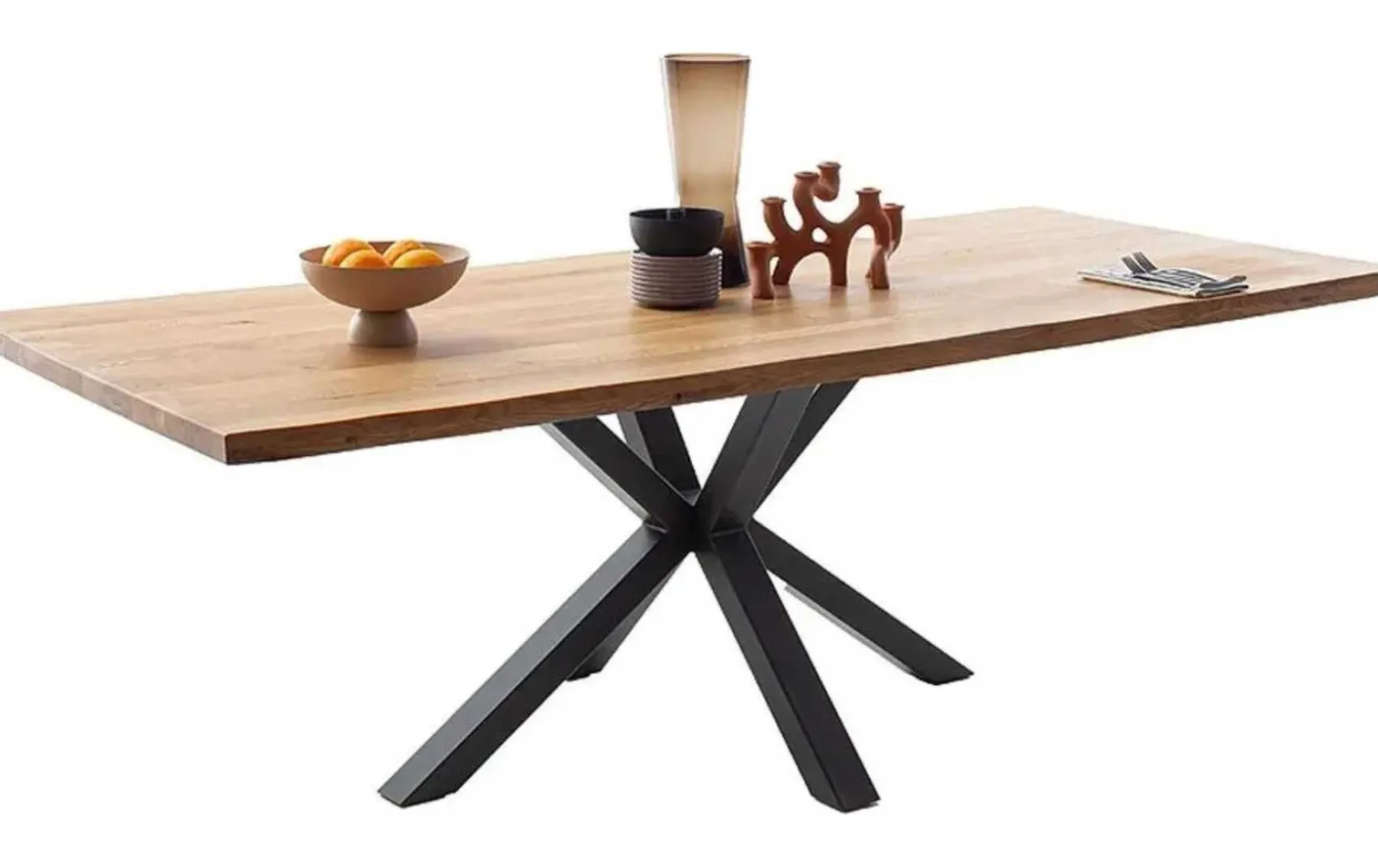 Dieser moderne Esstisch in Wildeiche massiv wird garantiert zum Blickfang in Ihrem Esszimmer! Perfekt, um die ganze Familie bei einem gemütlichen Abendessen oder Spieleabend zusammen zu bringen.