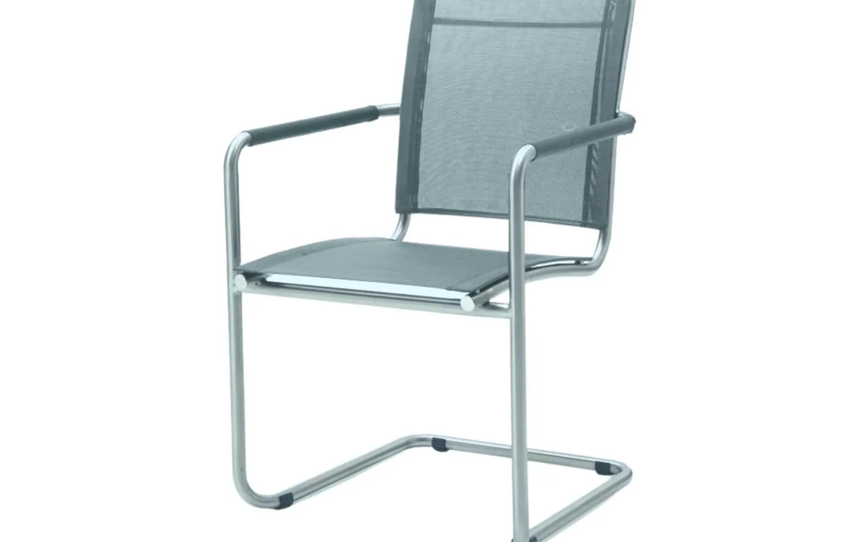 Die Armlehnen sind beim Gartenstuhl mit Freischwinger Gestell ebenso mit dem Batyline Gewebe bezogen, so dass eine wohltuende Ablage entsteht.