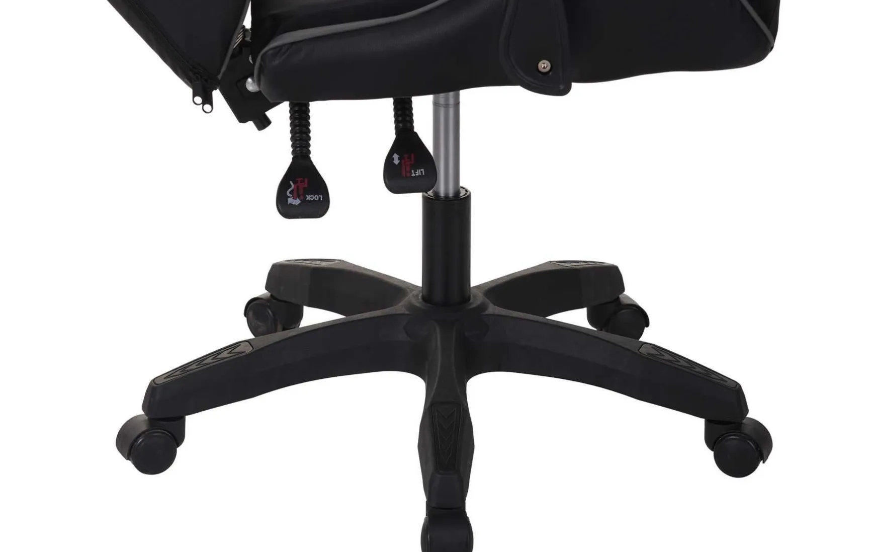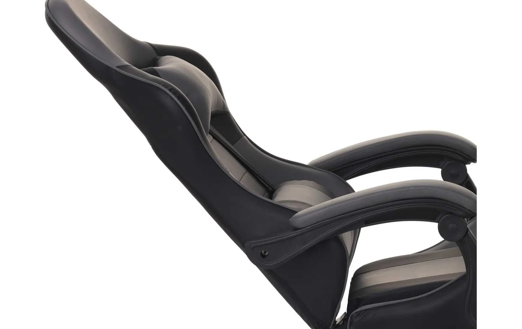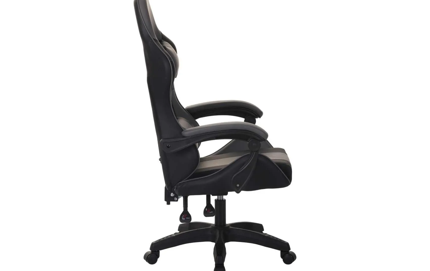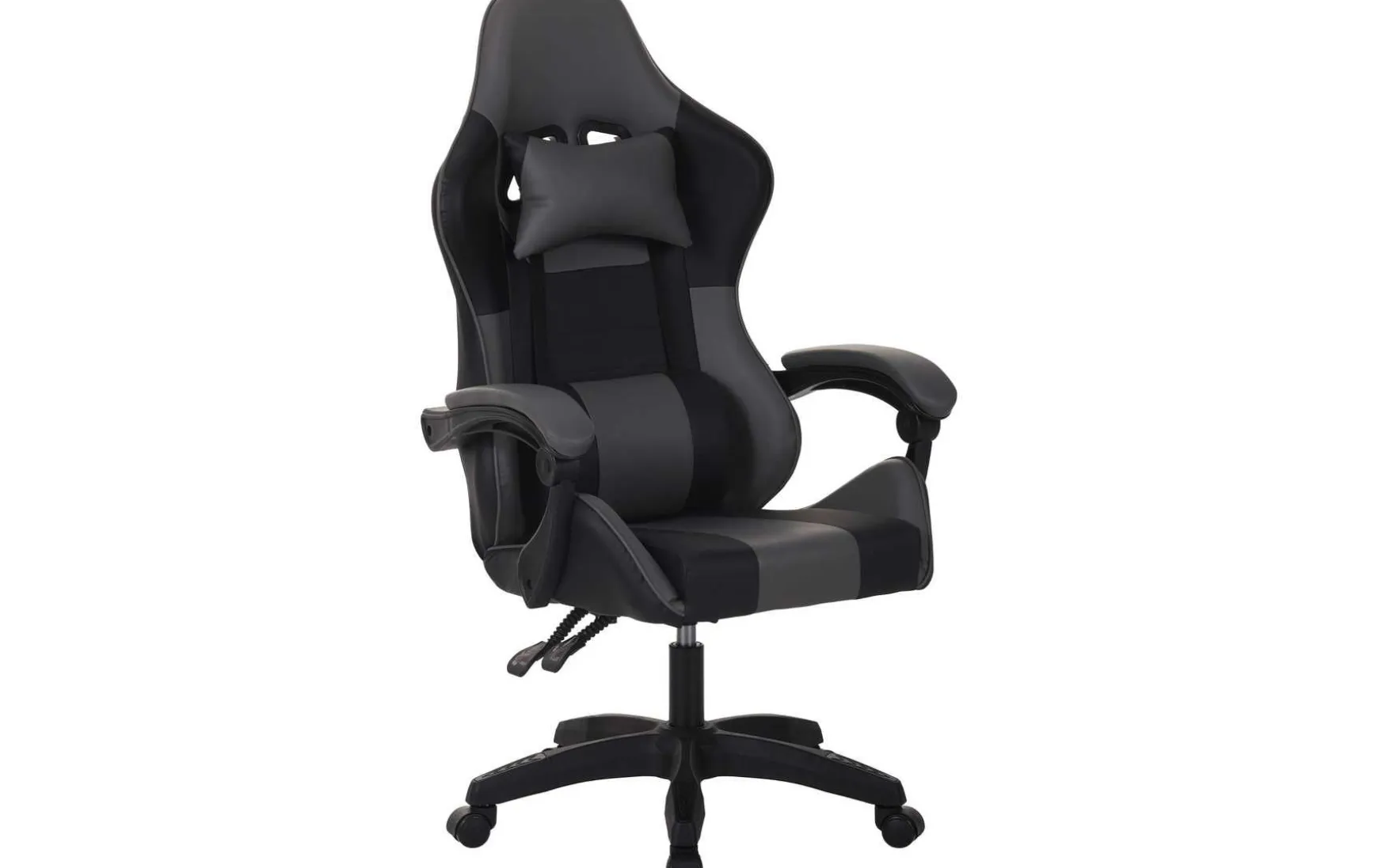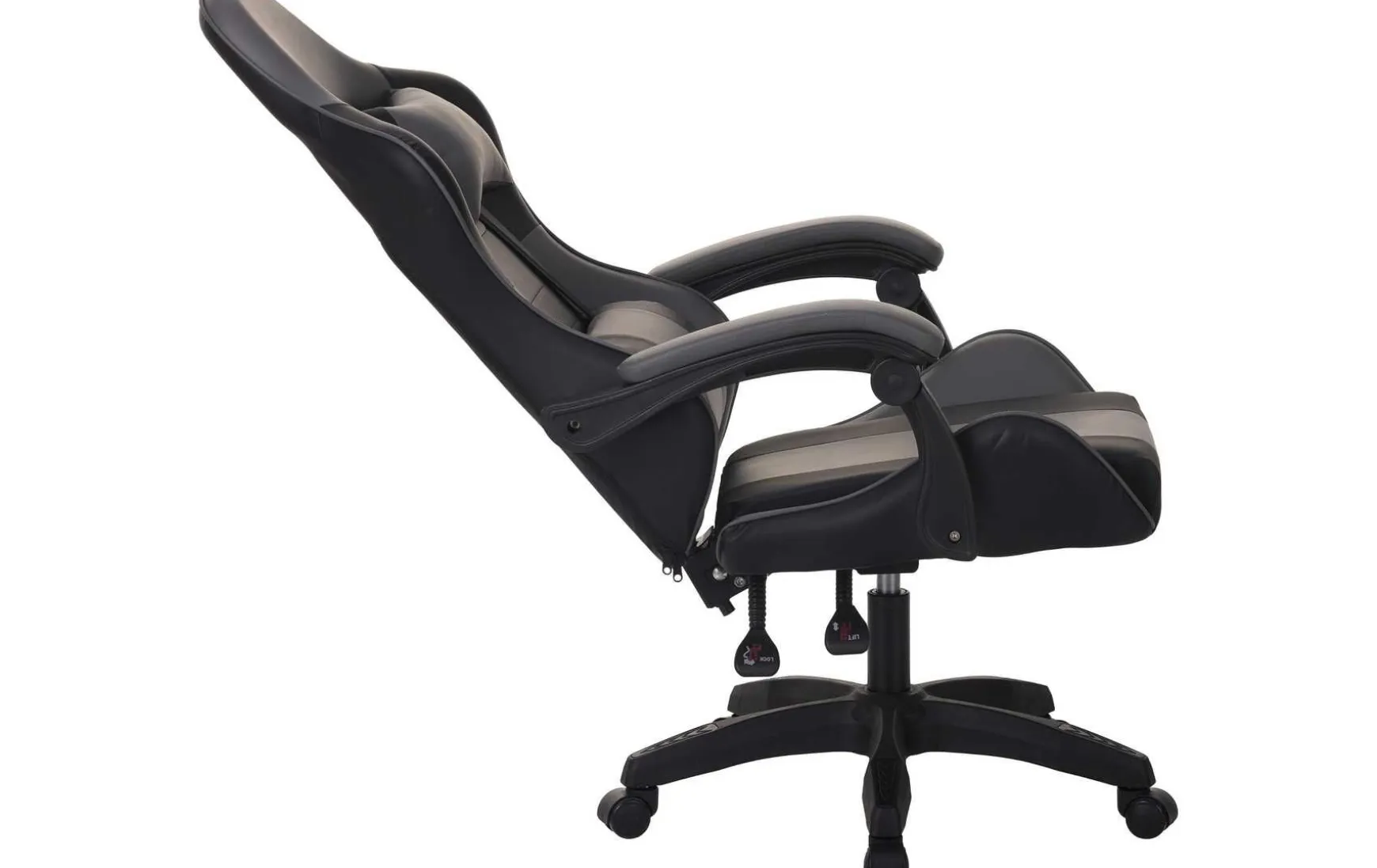 Der moderne Gamingstuhl in Grau-Schwarz bietet Komfort und Flexibilität für lange Gaming- oder Arbeitssessions. Die 360°-drehbare Sitzfläche sowie die höhenverstellbare Sitzhöhe sorgen für ergonomisches Sitzen, während die Kippfunktion zusätzliche Bewegungsfreiheit ermöglicht. Das Gestell aus Kunststoff auf 5 Teppichrollen garantiert Stabilität und Mobilität. Mit den Maßen ca. 70 × 120–130 × 65 cm (B × H × T), einem Gewicht von ca. 14,5 kg und einer Belastbarkeit von bis zu 110 kg ist der Stuhl robust und zugleich kompakt.