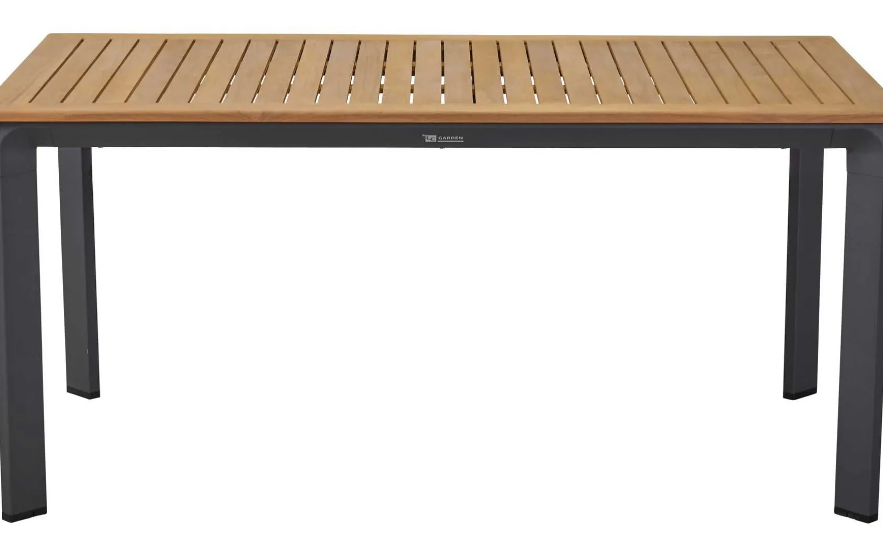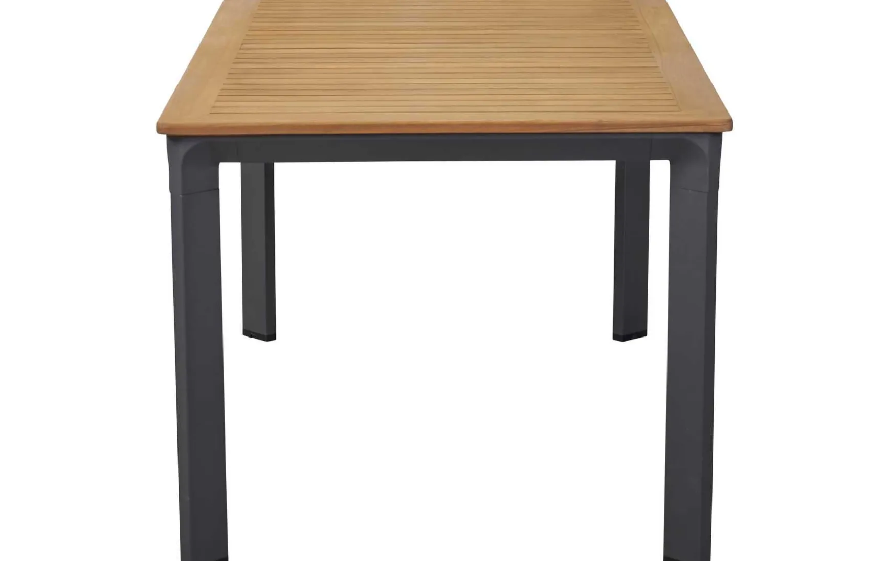 Klassisch aus vier Tischbeinen besteht das Gestell des Tisches. Die Platte des Tisches ist aus edlem Teakholz gefertigt. Mit ihrem hohen natürlichen Anteil an Öl ist sie bereits von Haus aus sehr gut vor Witterungseinflüssen geschützt. Farblich ist die Platte in Natur gehalten. Mit der rechteckigen Form lässt sich der Gartentisch platzsparend in Ecken oder an Häuserwänden aufstellen. Aufgrund seines geringen Eigengewichts von gerade einmal 20,6 kg ist der Gartentisch leicht genug, um den Standort öfter zu wechseln. Mit den Maßen 160cm x 90cm ist der Gartentisch ein Möbelstück einer gängigen mittleren Standardgröße. Bis zu 6 Personen können an diesem Gartentisch sitzen.