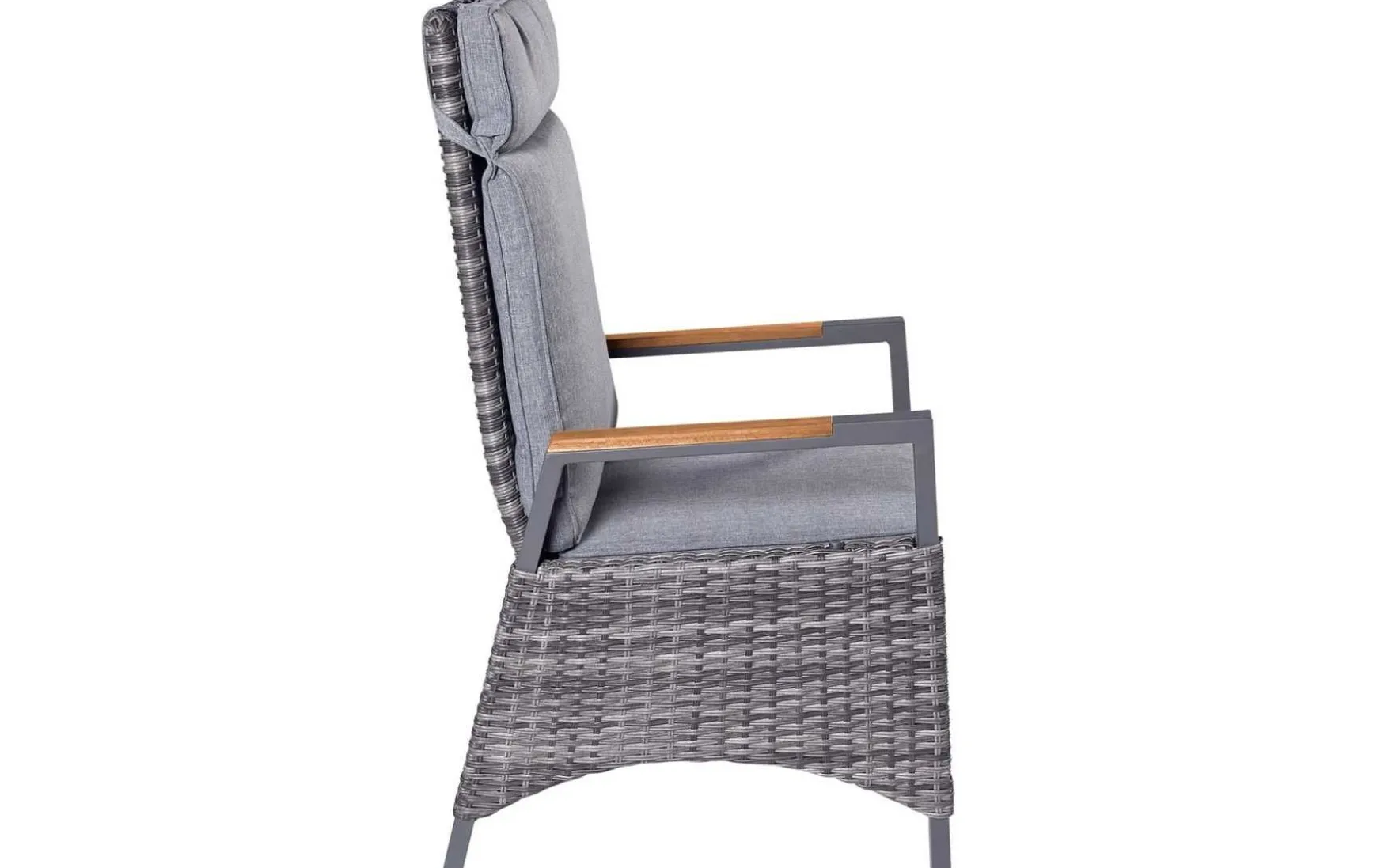 Dieser Positionsstuhl mit einer Teak-Armlehne in natürlichem Finish ist eine Kombination aus altbewährter und moderner Möbeltechnologie. Mit seinen eleganten Armlehnen aus Aluminium ist der Stuhl ein wahres Highlight für jeden Garten. Die verstellbare Rückenlehne und das kombinierte Sitz- und Rückenpolster sorgen dafür, dass Sie bequem in Ihrem Garten entspannen können. Die Lehne lässt sich per Knopfdruck leicht anpassen, während die robuste Konstruktion aus Aluminium den Stuhl leicht und formstabil macht. Dank seines modernen Designs ist der Positionsstuhl der perfekte Begleiter für Ihren Außenbereich.