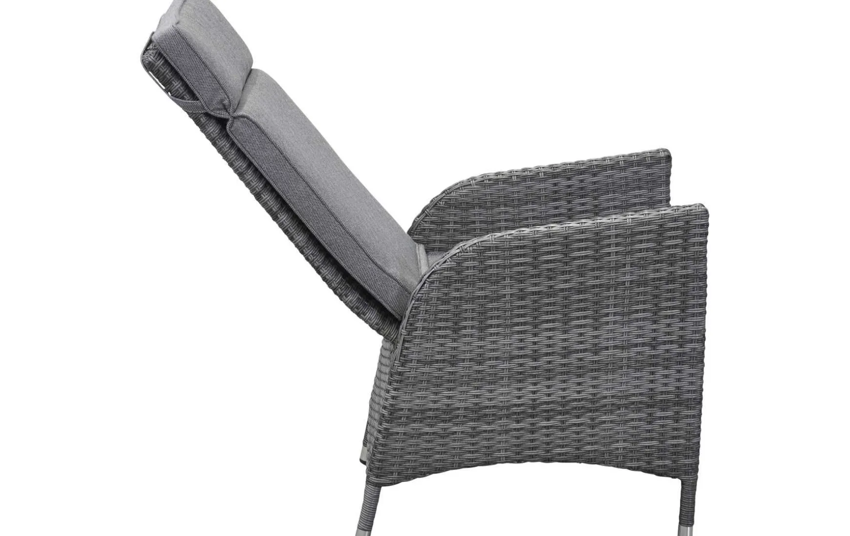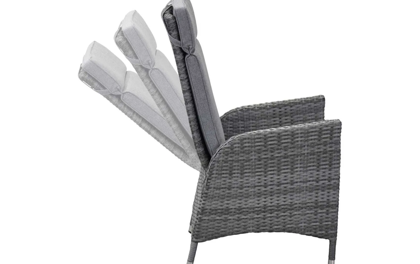 Sie suchen neue Stühle für Ihren Gartentisch? Wie wäre es mit dem Positionsstuhl? Das komfortable Sitzmöbel lädt Sie förmlich dazu ein, Ihr Wochenende im Freien zu genießen. Das Gestell wird aus Aluminium gefertigt. Das geringe Eigengewicht des Materials macht den Gartensessel zu einem robusten, aber dennoch leicht zu transportierenden Sitzmöbel auf Ihrer Terrasse. Das Gestell, das mit hochwertigem Polyrattan-Geflecht umflochten ist, bringt ein natürliches Flair auf die Terrasse. Als hochwertiges Material für den Bezug kommt ein Polyester-Stoff zum Einsatz. Er ist sehr strapazierfähig und bietet somit die idealen Voraussetzungen für den Einsatz im Freien. Den Gartensessel können Sie ganz sanft stufenlos verstellen. Der Gartensessel ist bis zu einem Gewicht von 110 kg belastbar.