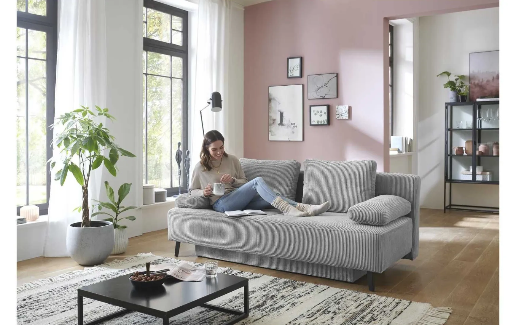 Dieses moderen Querschläfersofa ist ideal für ihr Gästezimmer oder auch für kleinere Einzimmerwohnungen. Genügend Stauraum bieten der inkludierte Bettkasten.