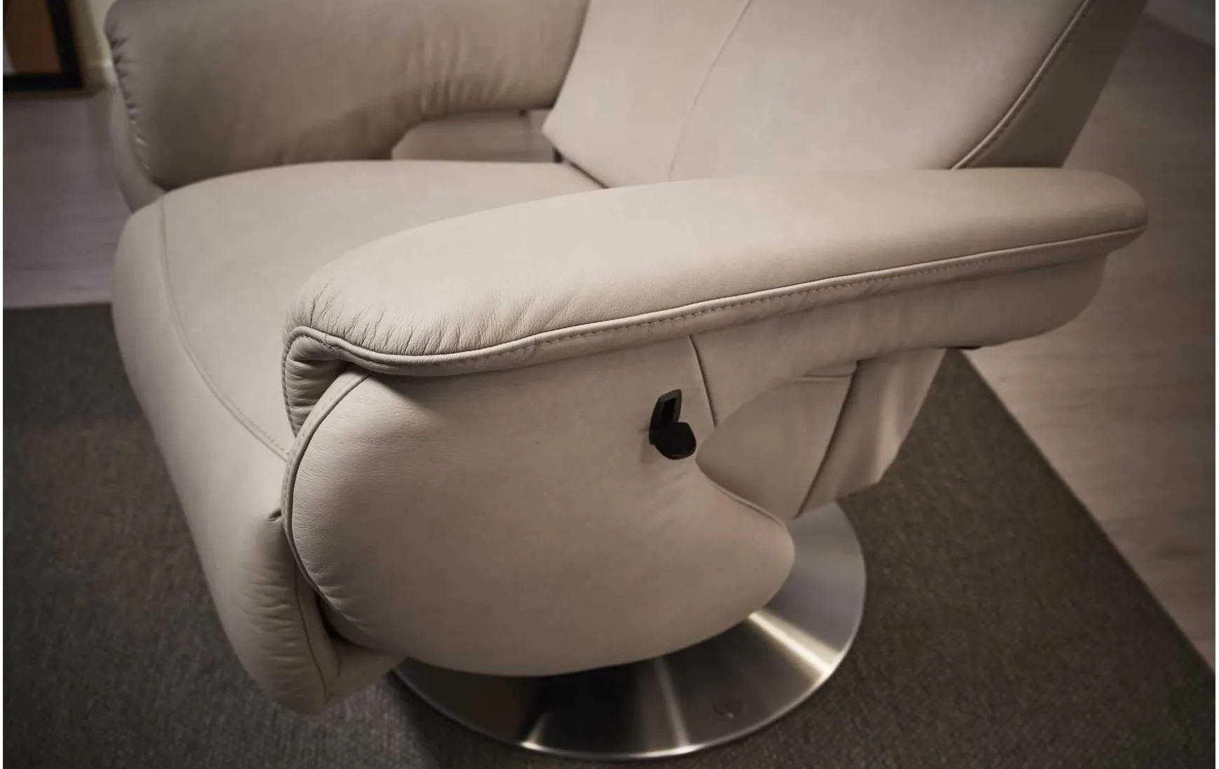 Dieser Ledersessel bietet gleich mehrere Besonderheiten. Er ist mittels Gasdruckfeder höhenverstellbar und obendrein um 360 Grad drehbar. Auf Wunsch kann sein Sitz manuell in Relaxposition gebracht werden. Eine getrennte Verstellmöglichkeit von Beinauflage und Rückenlehne sorgt für zusätzlichen Komfort. Beachten Sie bitte, dass neben der Sitzqualität Superlastic med noch zwei weitere Sitzqualitäten gegen Mehrpreis lieferbar sind. Elektrische Funktionen sind ebenfalls gegen Mehrpreis erhältlich. Freuen Sie sich zudem auf eine breit gefächerte Leder- und Stoffauswahl.