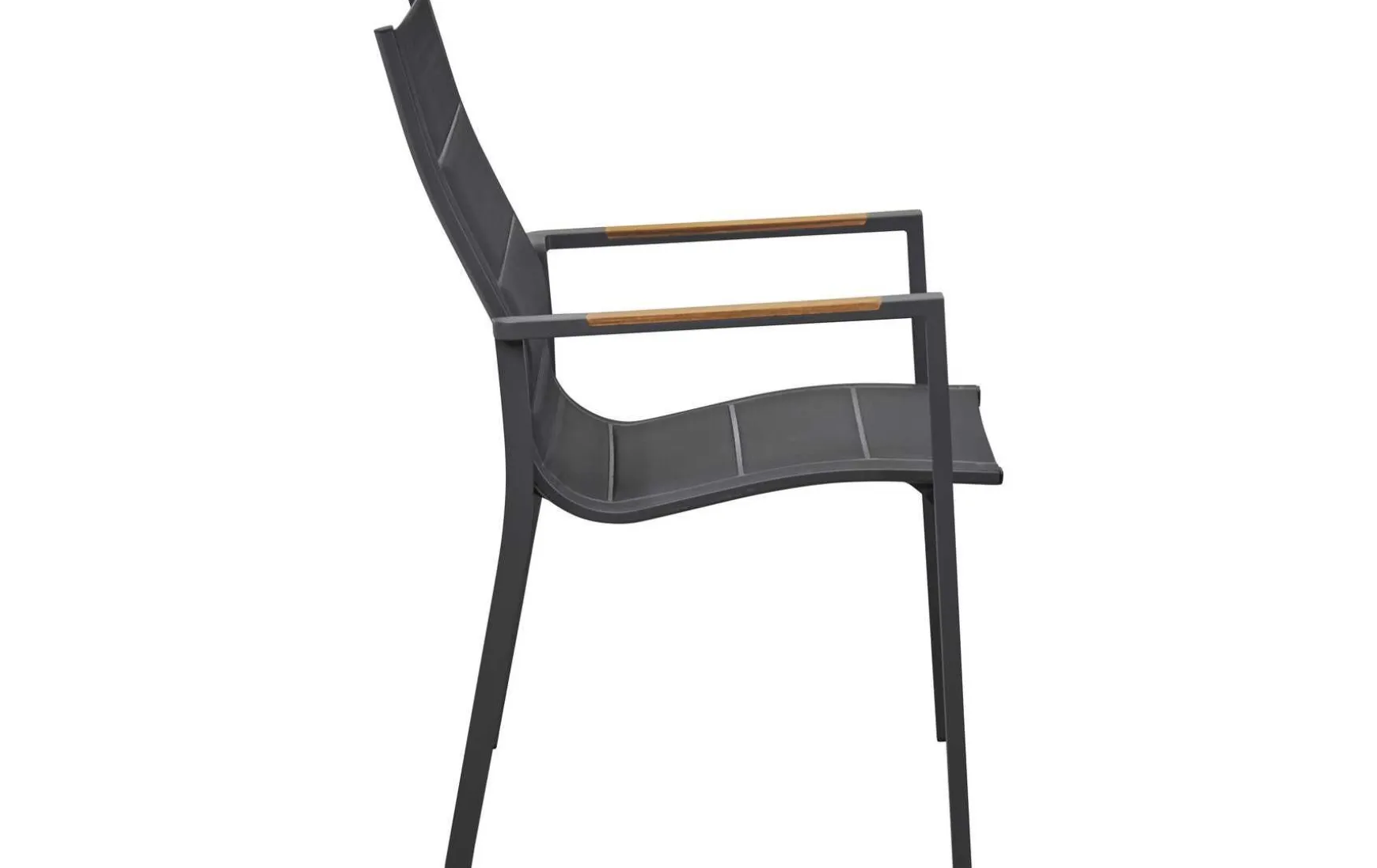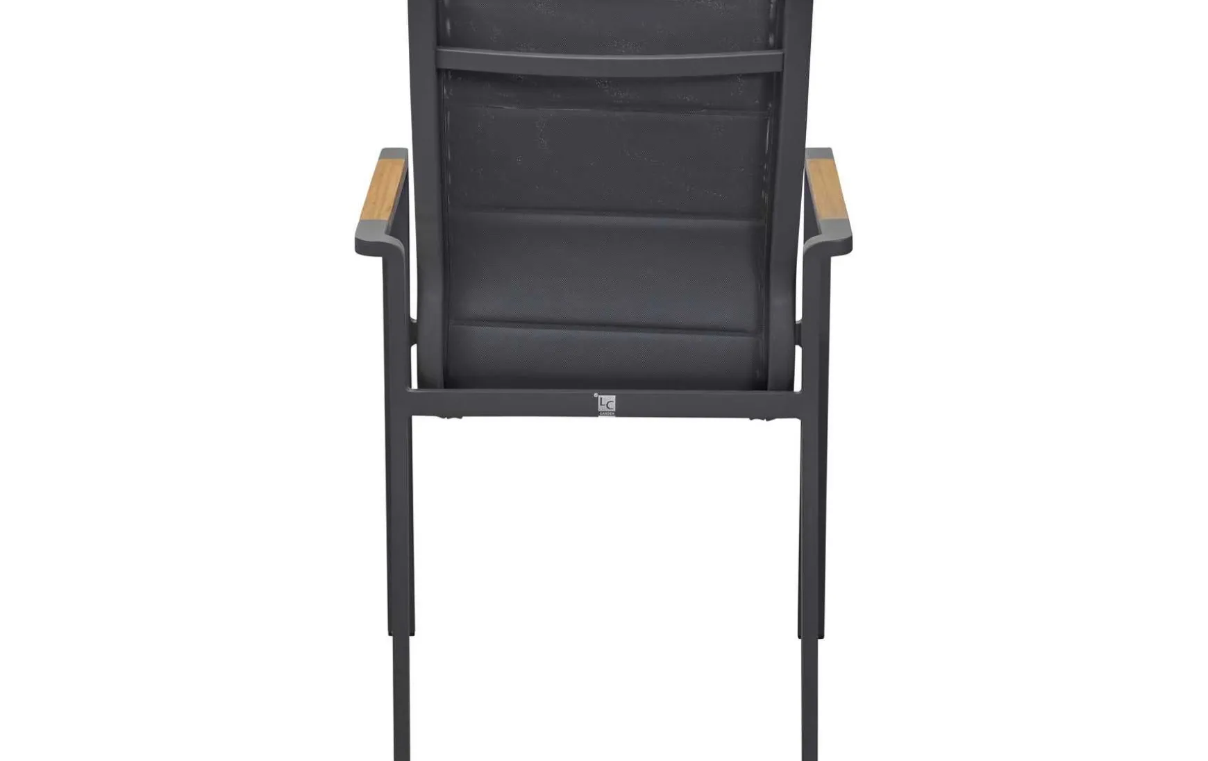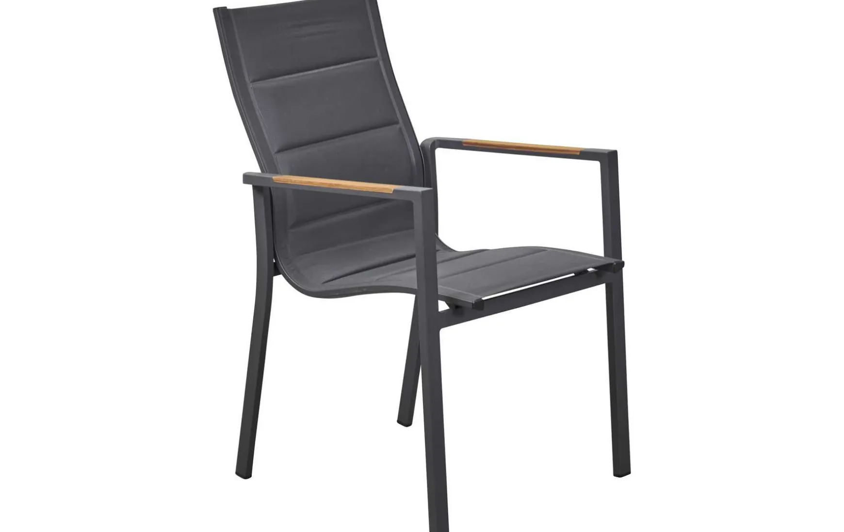 Das Gestell besteht aus pflegeleichtem und wetterfestem Aluminium in der Farbe Anthrazit. Ein weiterer Pluspunkt des Stapelsessels ist die Bespannung mit Textilene. Dieser Bezugsstoff überzeugt durch eine hohe Robustheit gegenüber Hitze und Frost aus und ist leicht zu reinigen. Der Clou: Aufeinander gestapelt können auch mehrere Exemplare des Stapelsessels platzsparend aufbewahrt werden. Dank der Verwendung von hochwertien Materialien ist der Stapelsessel überaus robust und hält einer Belastung von 120 kg hervorragend stand.