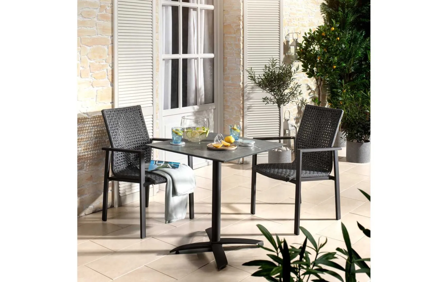 Dieser moderne Stapelstuhl kombiniert elegantes Design, Komfort und praktische Funktionalität und eignet sich ideal für Terrasse, Balkon oder Garten. Das stabile Aluminiumgestell, pulverbeschichtet in Anthrazit, sorgt für Langlebigkeit, Witterungsbeständigkeit und einen modernen Look. Die bequeme Sitzfläche in Dunkelgrau bietet hohen Komfort, während das stapelbare Design das platzsparende Verstauen ermöglicht – perfekt für flexible Einsätze bei geselligen Anlässen oder kleinen Außenbereichen.