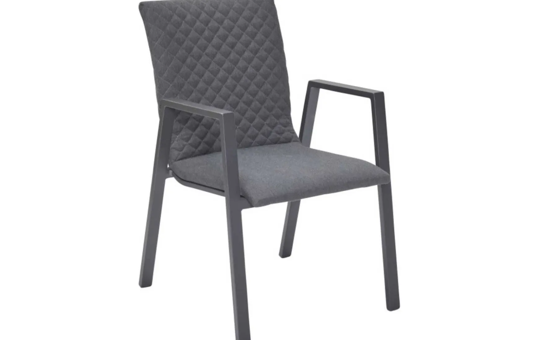 Dieser moderne Stapelstuhl vereint stilvolles Design mit hoher Funktionalität und ist ideal für Terrasse, Balkon oder Garten geeignet. Die bequeme Sitzfläche und Rückenlehne aus Stoff Sunbrella Flanell bieten angenehmen Komfort und sind besonders langlebig und pflegeleicht. Das Diamond-Stitching im Rücken verleiht dem Stuhl eine edle, hochwertige Optik. Das robuste Gestell aus pulverbeschichtetem Aluminium in Anthrazit sorgt für Stabilität, Langlebigkeit und moderne Eleganz. Dank des praktischen Stapel-Designs lässt sich der Stuhl bei Nichtgebrauch platzsparend verstauen.