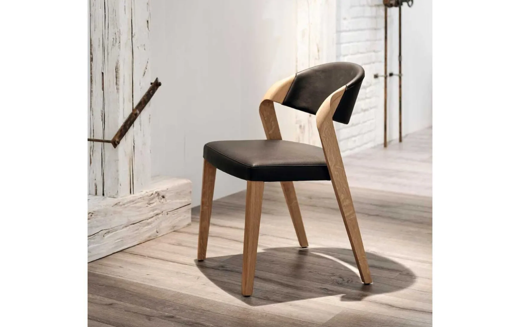 Eleganz und Gemütlichkeit zeichnen diesen Polsterstuhl aus. Der mit Leder in der Farbe Schwarz bezogene Stuhl besitzt ein Gestell aus massiver Eiche Altholz. Dieser Polsterstuhl garantiert besten Sitzkomfort, der einerseits durch die Sitzhöhe und andererseits durch die leicht rundliche Rückenlehne gewährleistet wird. Schickes Design und ein angenehmer Sitz – der Stuhl in zeitlosem Stil ist einfach perfekt für Ihren Essbereich!
