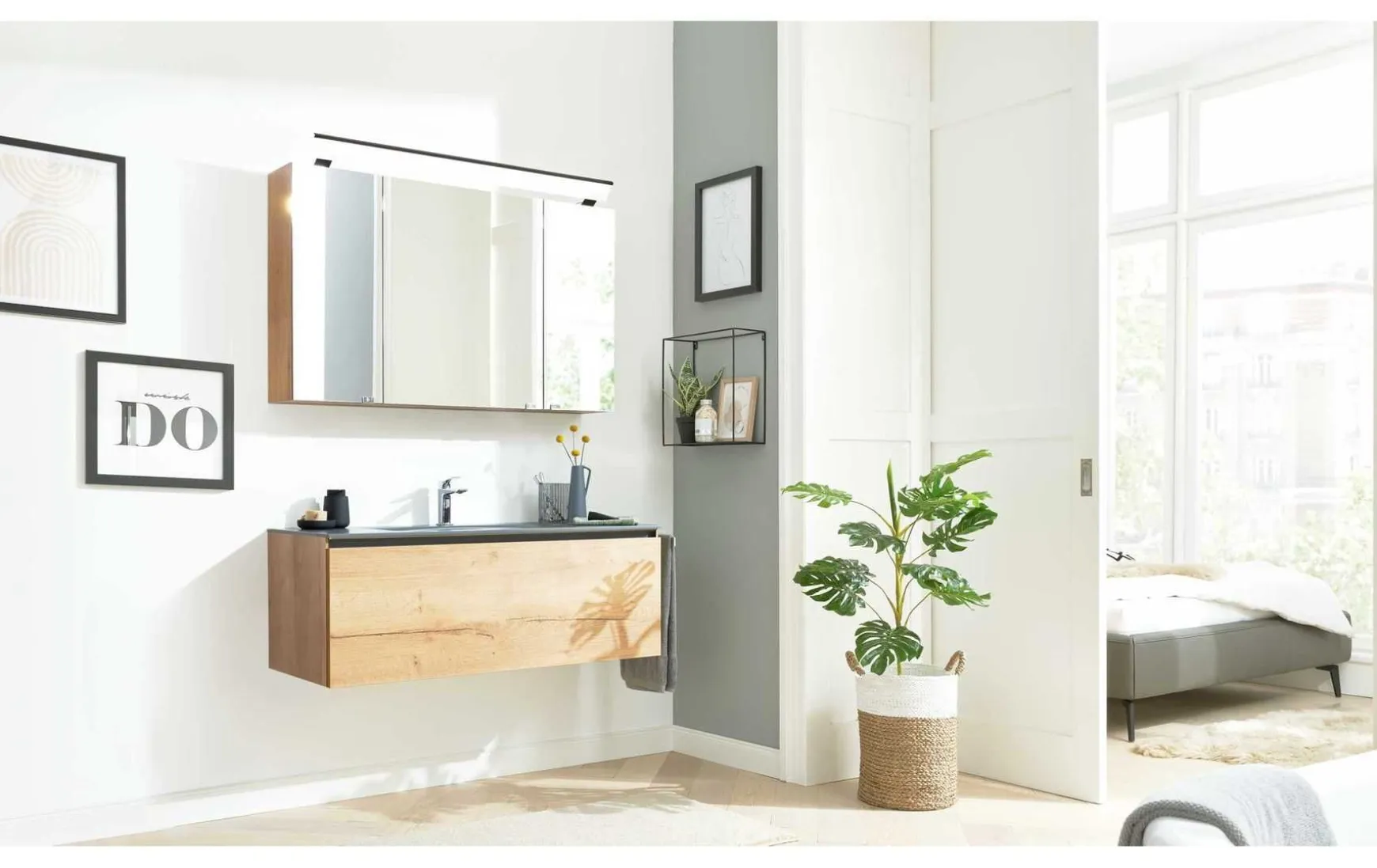 Spiegelschrank: inklusive Aufsatzleuchte und LED-Startset mit Emotion Funk-Fernbedienung, Breite ca. 120 cm