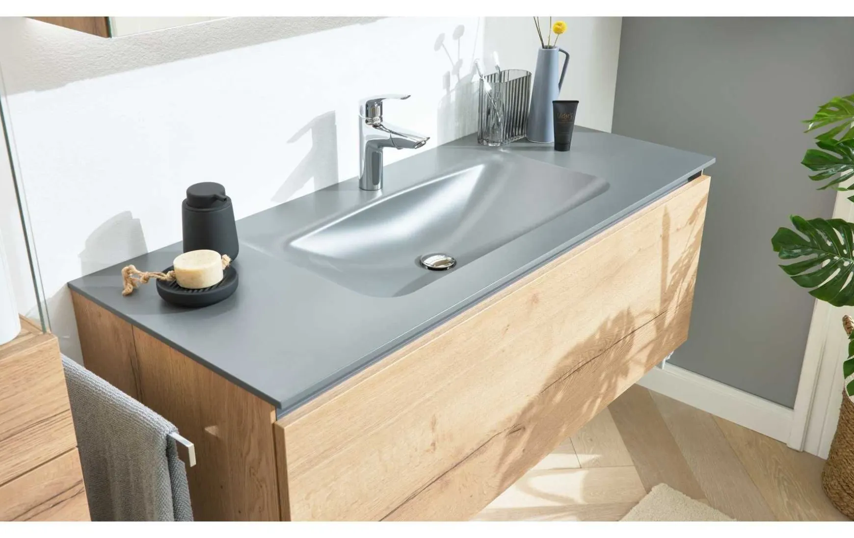 Mattgrauer Waschtisch: Breite ca. 120 cm, verchromte Einhand-Mischbatterie