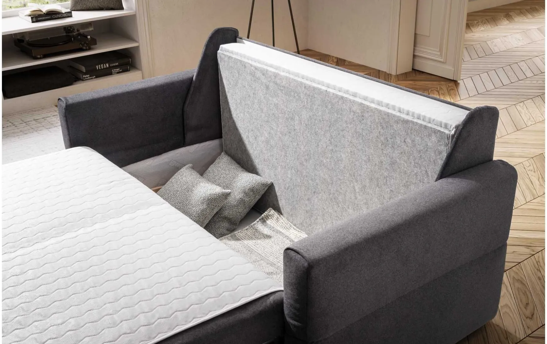 - Im Preis enthalten: Klappbares Armteil, Stauraum und Matratzenschonbezug