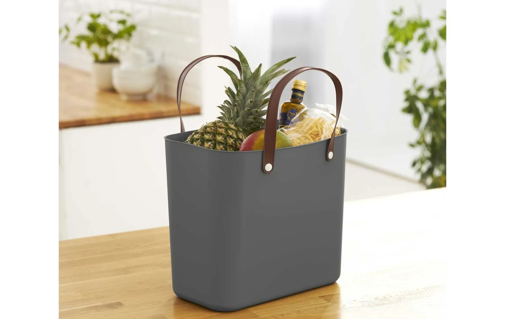 Mit ihrem Fassungsvermögen von 25 Litern bietet die Einkaufstasche aus Plastik viel Platz. Die ergonomischen Griffe halten einem Gewicht von bis zu 40 kg stand und dank des abgerundeten Designs und des pflegeleichten Materials ist die Tasche aussen sowie innen sehr leicht zu reinigen. Die Produkte sind nachhaltig produziert und aus recyceltem Material hergestellt.