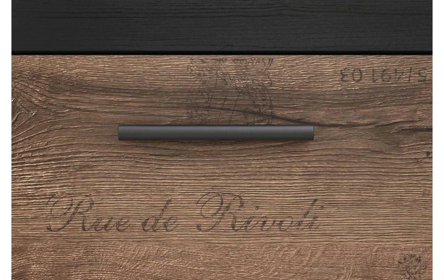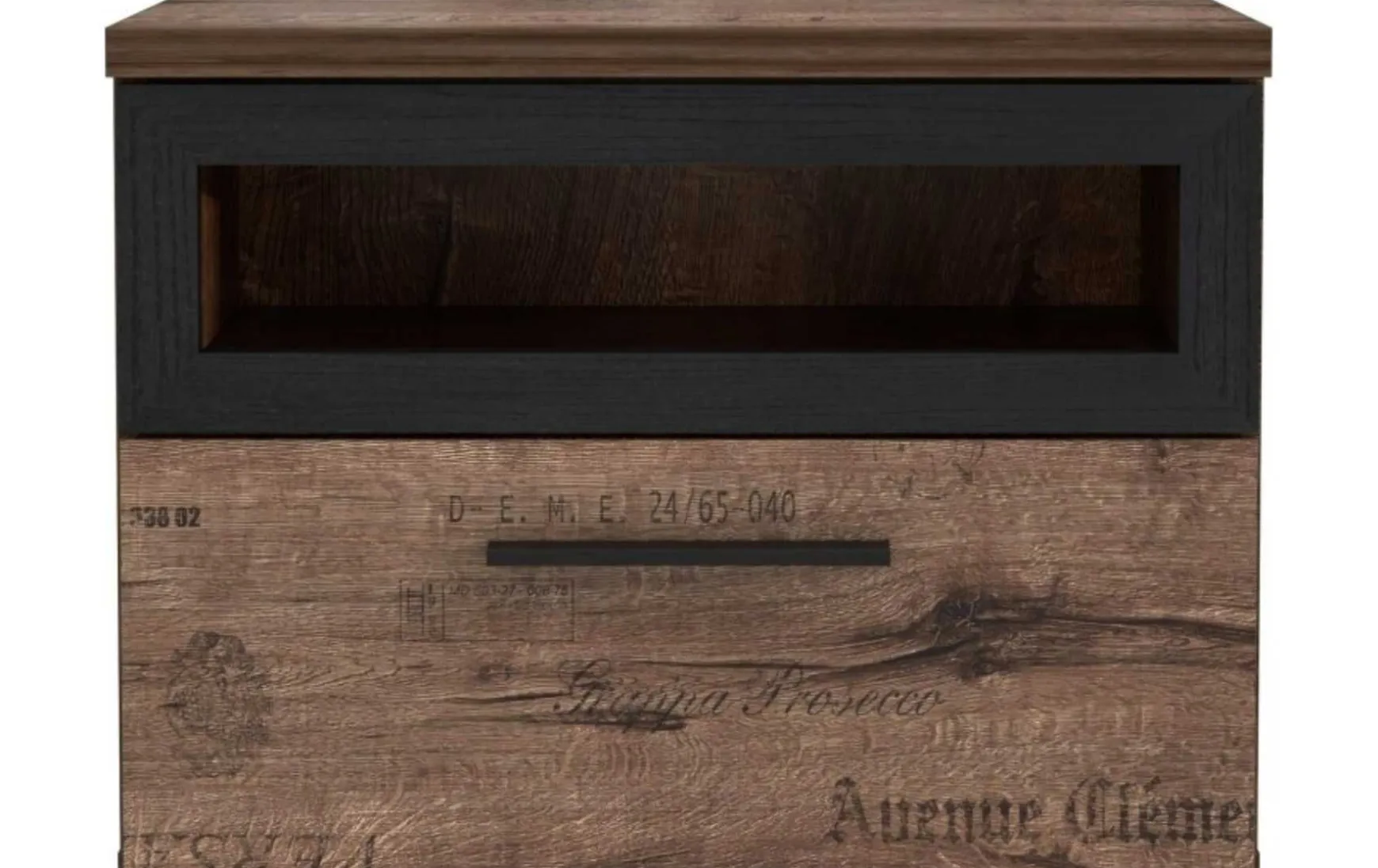 Die moderne Nachtkonsole in Schlammeiche überzeugt durch ihr zeitloses Design und praktische Funktionalität. Ausgestattet mit einer Schublade und einem offenen Fach bietet sie ausreichend Platz für persönliche Gegenstände direkt am Bett. Der schwarze Metallgriff setzt einen eleganten Kontrast zur warmen Holzoptik und unterstreicht den modernen Stil. Mit ihren kompakten Maßen von ca. 52 × 41,3 × 40,8 cm eignet sich die Nachtkonsole ideal auch für kleinere Schlafzimmer. Der Korpus und die Front bestehen aus pflegeleichtem Holzwerkstoff mit Folienoberfläche, die sich einfach trocken abwischen lässt. Das graue Innendekor und die stabile Rückwand sorgen für ein harmonisches Gesamtbild. Die Nachtkonsole wird als einzelnes Möbelstück geliefert, weitere Beimöbel und Beleuchtung sind optional erhältlich.