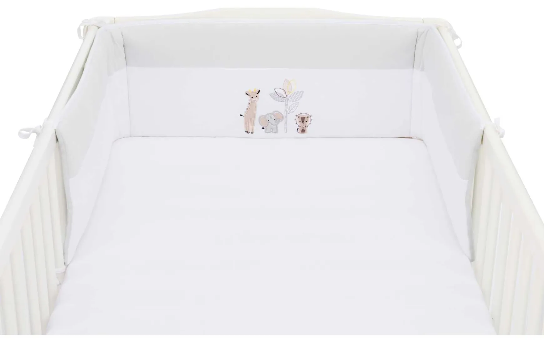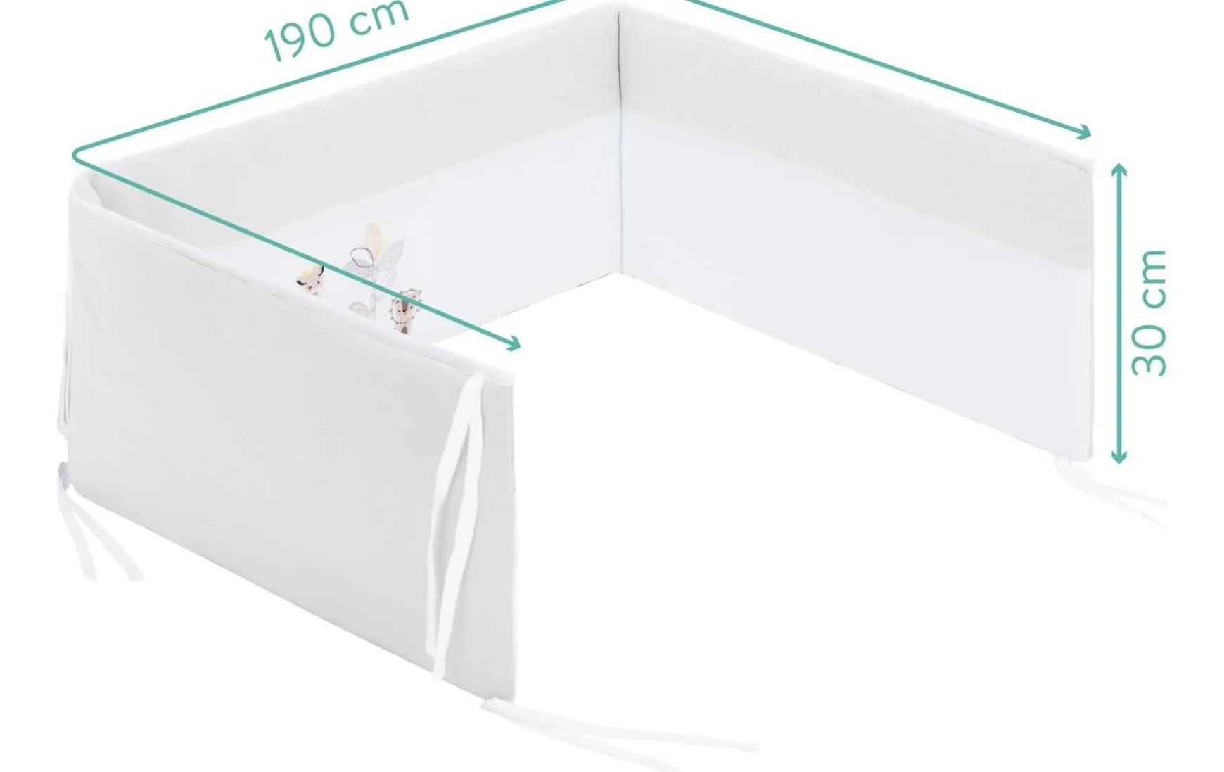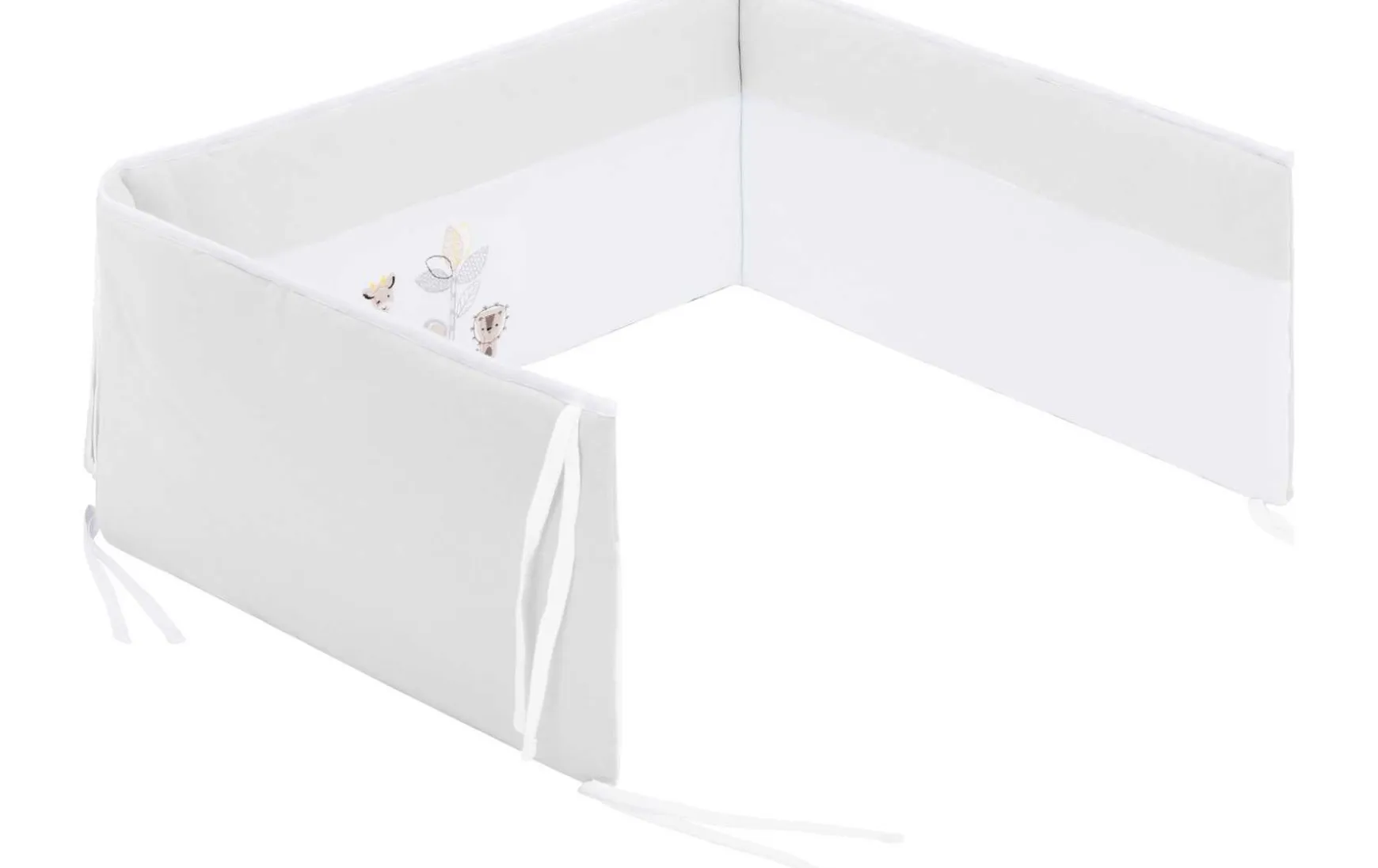 Du kannst es ganz einfach mit den 8 Bändern an Deinem Babybett anbringen – so polstert das Nestchen zuverlässig die Gitterstäbe ab.