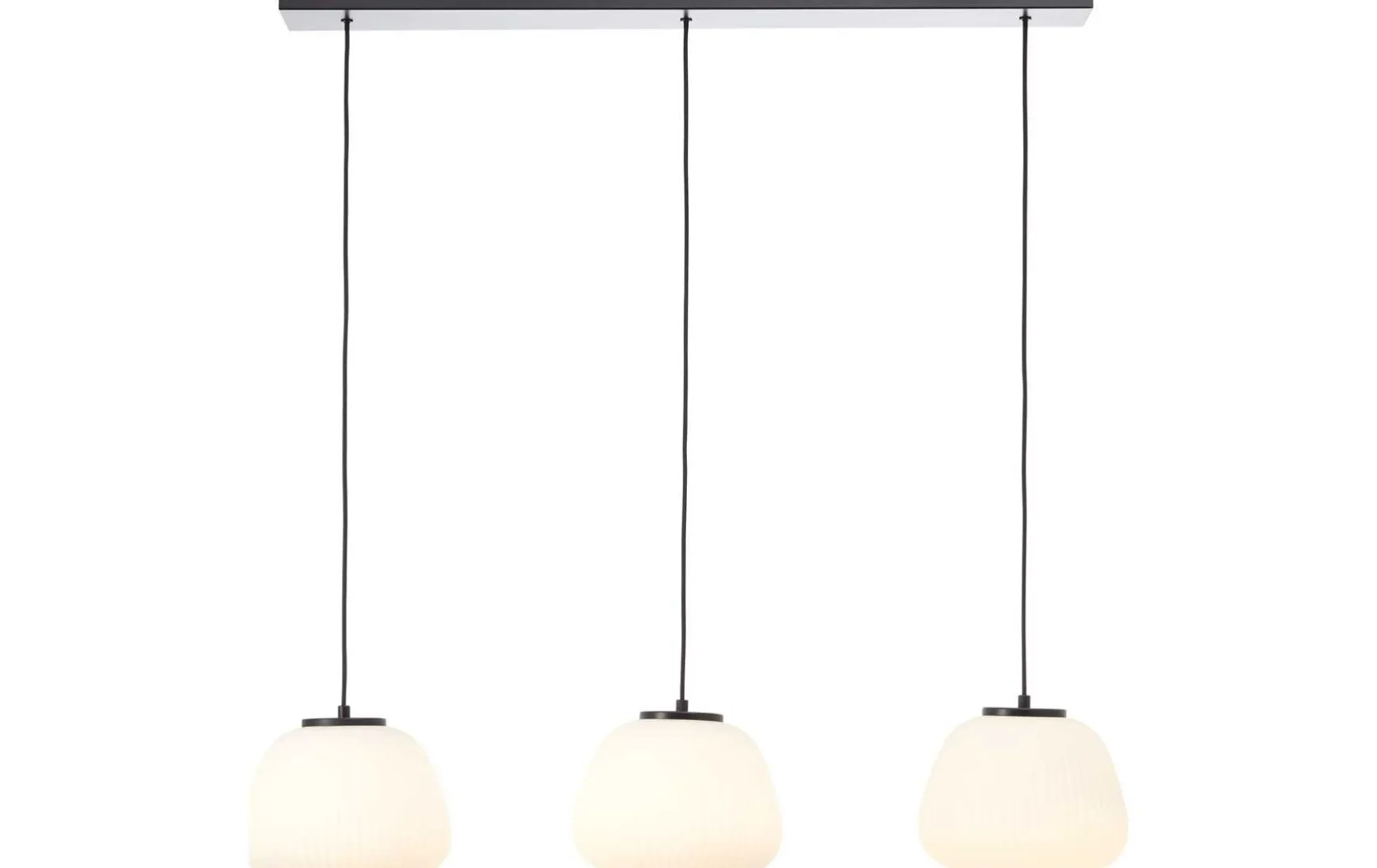 Dann ist diese dreiflammige Pendelleuchte mit geriffeltem Lampenschirm genau das Richtige für dich!