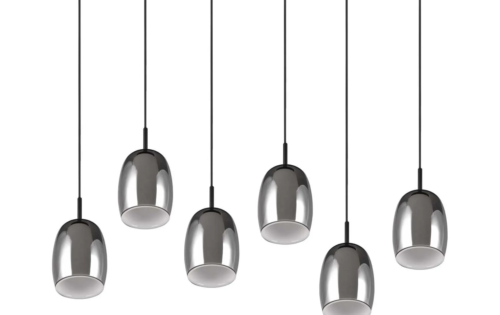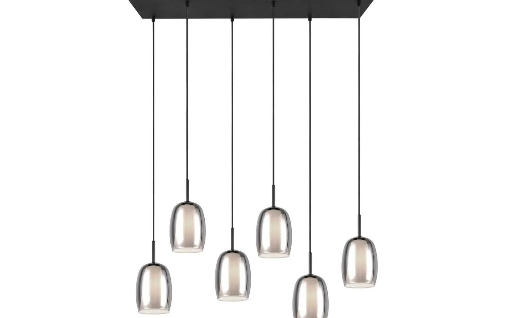 Diese Pendelleuchte setzt stilvolle und dekorative Akzente, die perfekt dem aktuellen Trend entsprechen. Mit ihren zwei elegant geformten Leuchtschirmen aus Glas je Lichtquelle zaubert sie ein besonders sanftes, stimmungsvolles Licht über einem Ess- oder Wohnzimmertisch. Die Verwendung von schwarz mattem Metall verleiht der Leuchte eine zeitlose Eleganz, während die Kombination aus dem äußeren rauchfarbigen Glasschirm und dem inneren weißen Glasschirm gleichzeitig einen Hauch von Modernität ausstrahlt. Dadurch fügt sich die Pendelleuchte mühelos in unterschiedlichste Einrichtungsstile ein. Für eine energiesparende Beleuchtung empfiehlt sich die Verwendung eines LED Leuchtmittels. Diese sind eine optimale Alternative zu herkömmlichen Halogen Leuchtmitteln und stehen für eine hohe Lichtqualität und eine Energieeinsparung von bis zu 80%. Zusätzlich profitieren Sie bei LED Leuchtmitteln von einer langen Lebensdauer, einer geringen Wärmeentwicklung und schonen gleichzeitig die Umwelt.