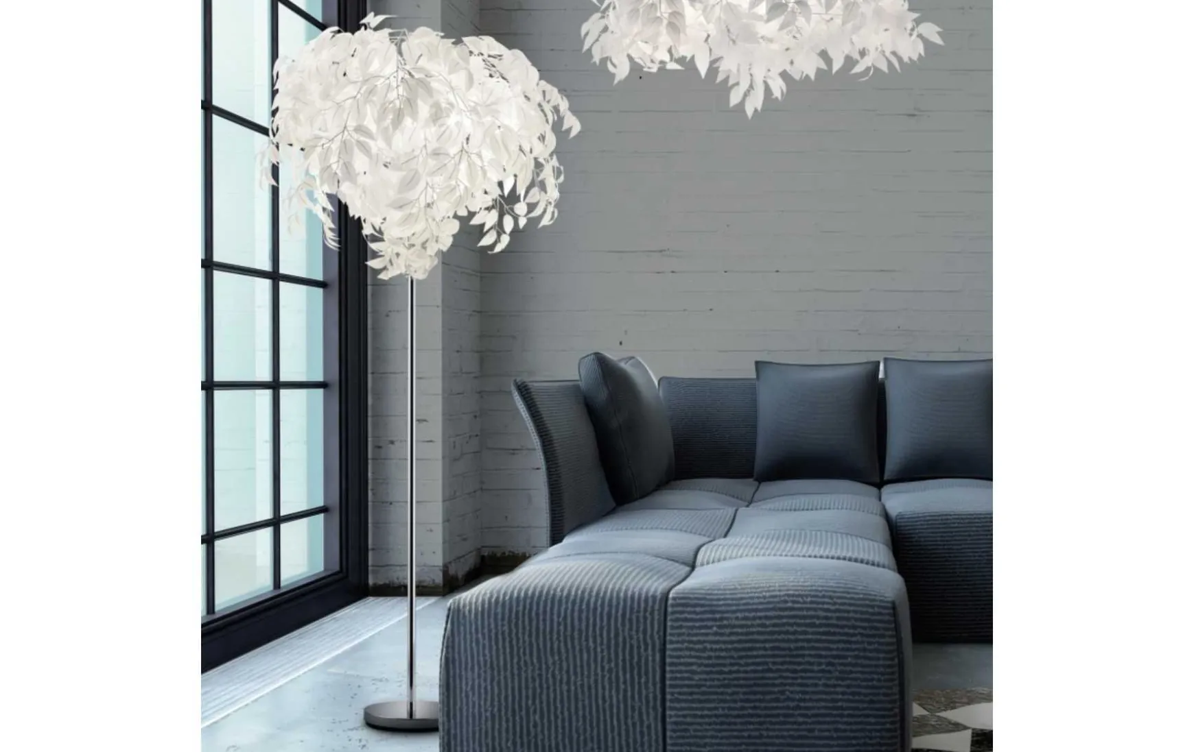 Diese ausgefallene Pendelleuchte besticht durch ihre Vielzahl an Kunststoffblättern. Dadurch wird die Leuchte zu einem Highlight an Ihrer Decke. Ein zauberhaftes Beleuchtungsobjekt für Wohnbereiche, deren Stil dem Jungen Wohnen zugeordnet werden kann. Sie hat eine Höhe von 150 cm und einen Durchmesser von 70 cm. Die weißen Kunststoffblätter und der chromfarbene Baldachin lassen sich mit weiteren verschiedenen Farbkonzepten kombinieren und machen somit ein Integrieren in Ihr Zuhause wunderbar einfach. Für eine energiesparende Beleuchtung empfiehlt sich die Verwendung eines LED Leuchtmittels.