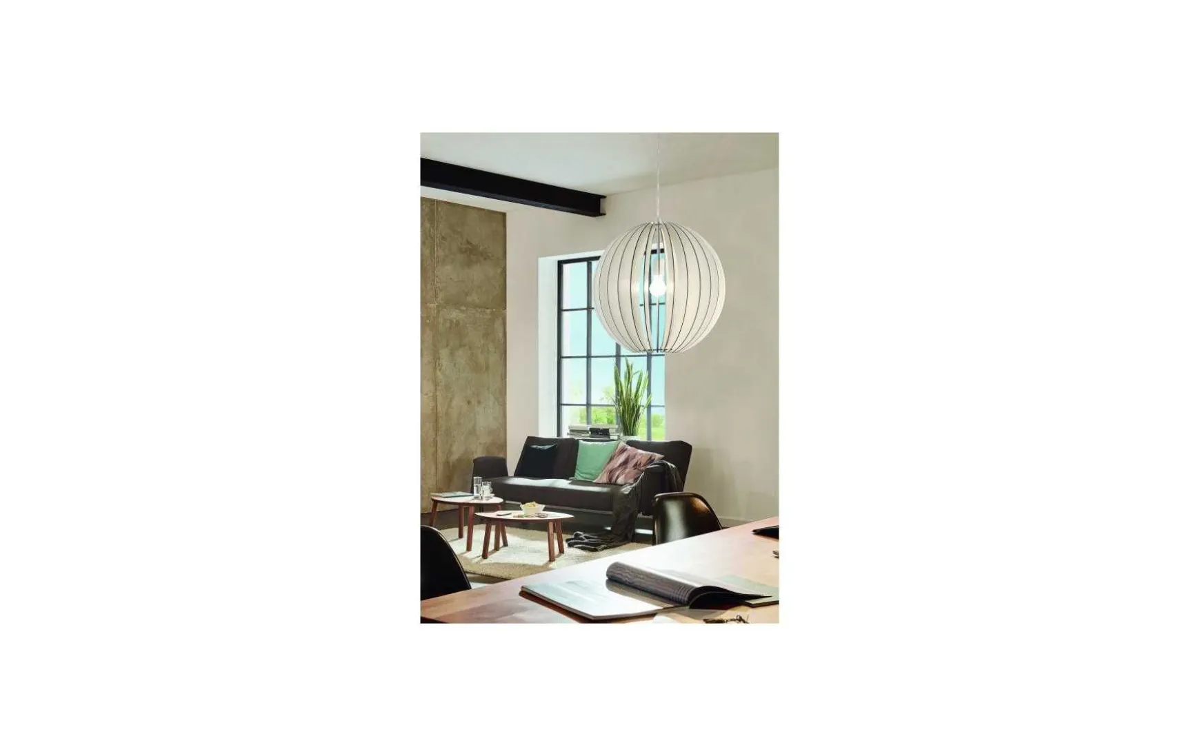 Die Lamellen sorgen im eingeschalteten Zustand für faszinierende Licht- und Schattenspiele. Die Hängelampe fügt sich mit ihrem Durchmesser von 50 cm nahtlos in moderne Einrichtungsstile ein und bietet eine wohnliche Beleuchtung im Wohnzimmer oder im Esszimmer über dem Esstisch.