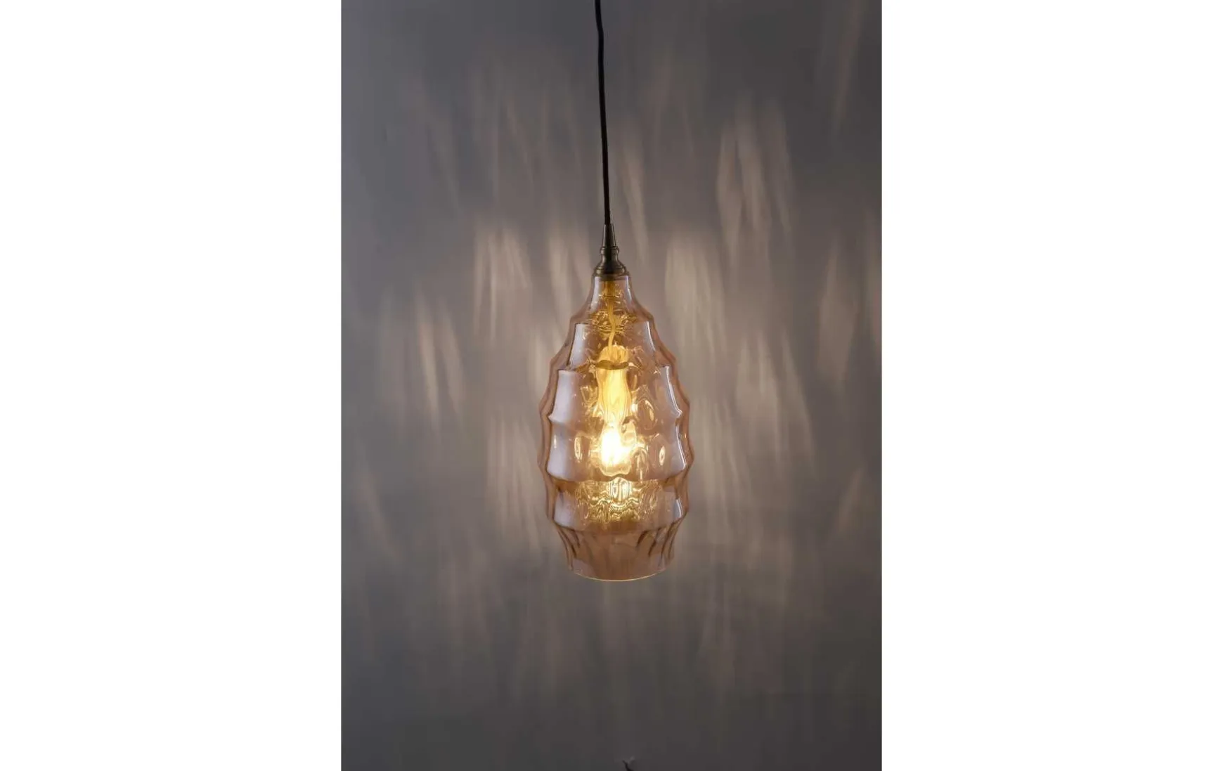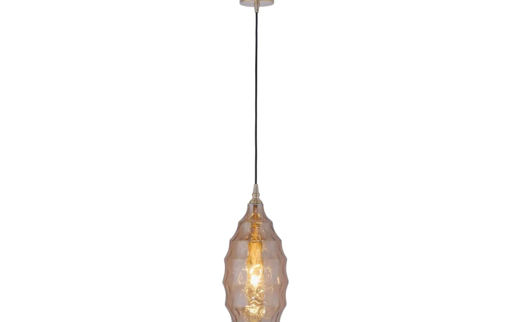 Die Pendelleuchte wird gekonnt durch das hübsche champagnerfarbige Glas in Szene gesetzt.