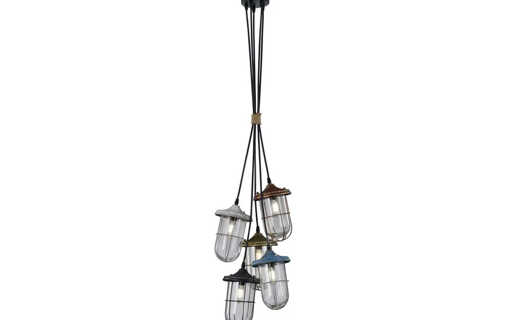 Die 5-flammige Pendelleuchte ist ein perfektes Beispiel dafür, dass Vintage nicht gleich alt und angestaubt bedeutet. Im Gegenteil – die Leuchte ist eine perfekte Ergänzung bei der Einrichtung eines Wohnraums im modernen Industrial Style. Diese Leuchte überzeugt im Wohnzimmer oder im Flur, alleine oder in Ergänzung durch weitere Leuchten der Serie. Die Abhängelänge der Leuchte beträgt max. 120cm. Diese Vintage Pendelleuchte aus Metall und Glas, ist vielfarbig und passt in fast jede Wohnumgebung. Für eine energiesparende Beleuchtung empfiehlt sich die Verwendung eines LED Leuchtmittels. Diese sind eine optimale Alternative zu herkömmlichen Halogen Leuchtmitteln und stehen für eine hohe Lichtqualität und eine Energieeinsparung von bis zu 80%. Zusätzlich profitieren Sie bei LED Leuchtmitteln von einer langen Lebensdauer, einer geringen Wärmeentwicklung und schonen gleichzeitig die Umwelt.