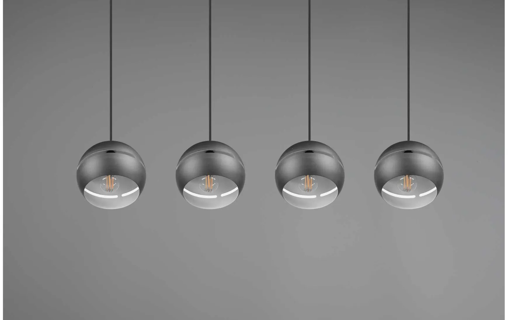 Die vierflammige Pendelleuchte sorgt mittig über dem Esstisch angebracht für optimale Lichtverhältnisse und wird zum Blickfang.