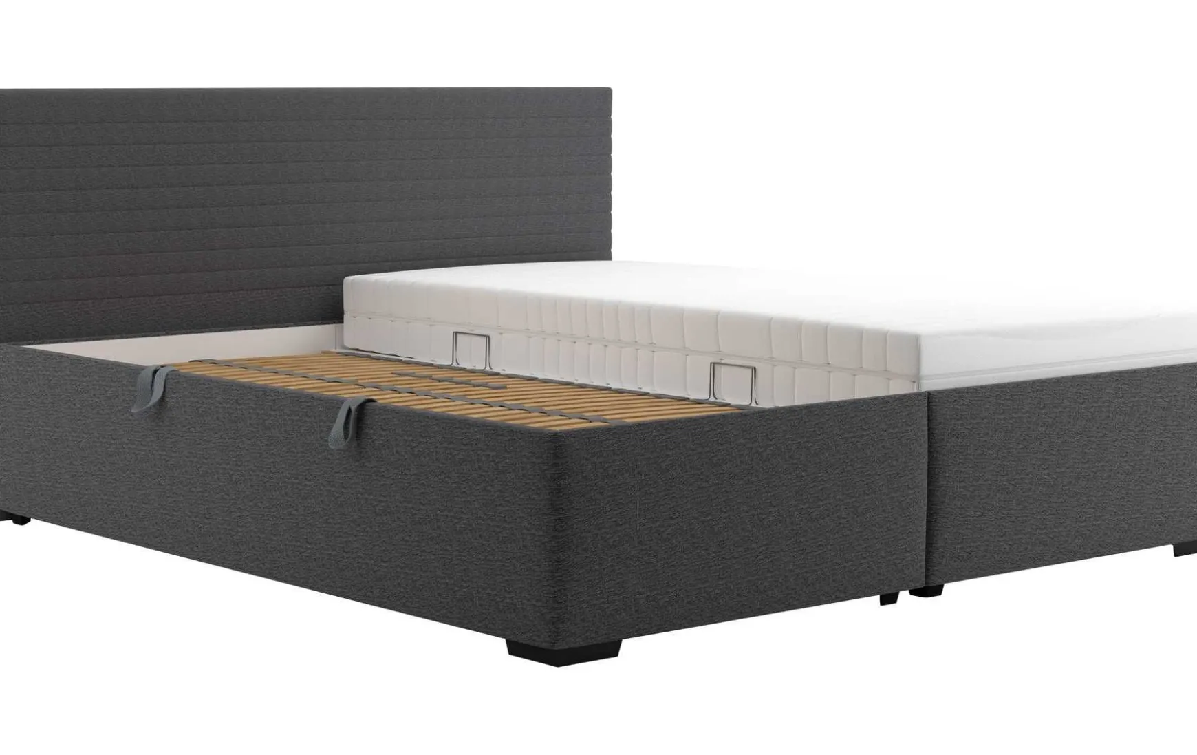 Besonders praktisch: Die beiden Lattenrahmen lassen sich separat öffnen und geben den Zugang zu einem geräumigen, seitlich zugänglichen Bettkasten frei. Hier ist reichlich Platz für Bettwäsche, Decken oder saisonale Textilien.