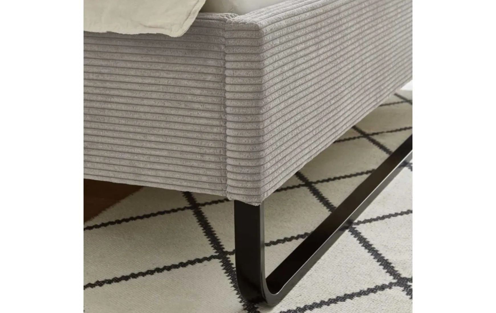 Dieses stilvolle Polsterbett überzeugt mit modernem Design und hohem Wohlfühlfaktor. Der hochwertige Cord-Stoffbezug in elegantem Taupe verleiht dem Bett eine warme, trendbewusste Ausstrahlung und sorgt zugleich für eine angenehm weiche Haptik. Mit einer großzügigen Liegefläche von ca. 180 × 200 cm bietet das Polsterbett viel Platz für erholsamen Schlaf. Die schwarzen Metallkufen setzen einen modernen Kontrast zum Stoffbezug und sorgen für Stabilität sowie einen leichten, schwebenden Look. Ein perfektes Schlafzimmermöbel für alle, die Komfort und zeitgemäßes Design harmonisch verbinden möchten.