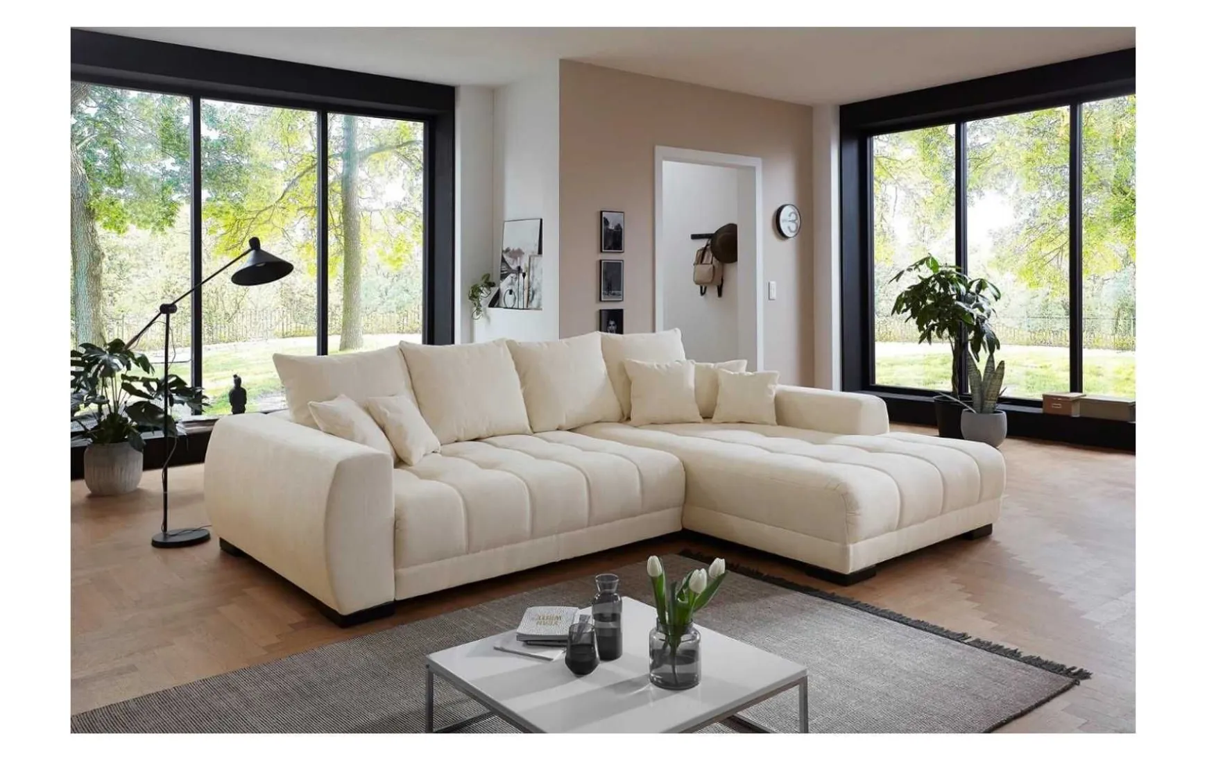 Das Ecksofa bringt Gemütlichkeit in Ihr Zuhause. Dank des tollen Bonellfederkerns erhalten Sie ein angenehmes Sitzgefühl und haben an Fernsehabenden viel Freude an Ihrem Sofa. Der Bezug ist in vielen verschiedenen Farben und Materialien erhältlich und kann so auf Ihre vorhandene Einrichtung angepasst werden. Ein weiteres Highlight bietet Ihnen der Korpus, welcher farblich von der Sitzfläche abgesetzt werden kann. Ob einfärbig oder zweifärbig mit farblichem Kontrast, diese Garnitur wird ein echter Eye-Catcher in Ihrem Wohnraum.