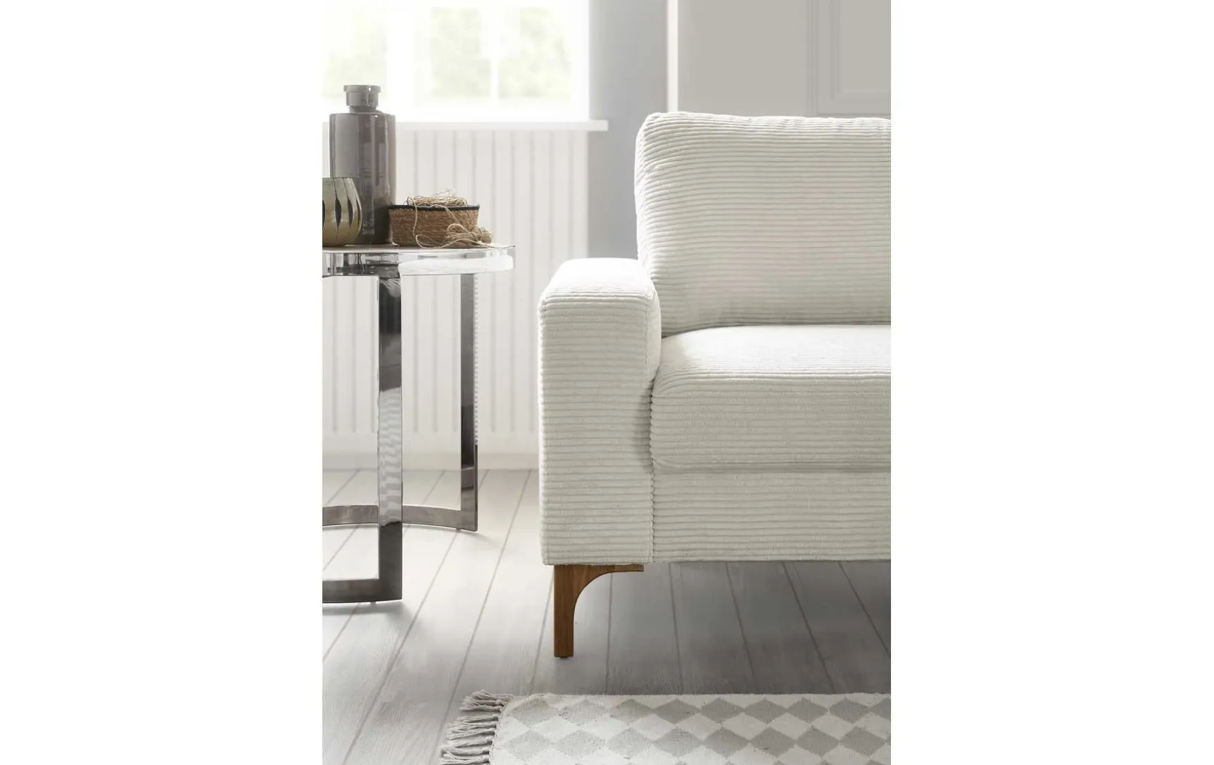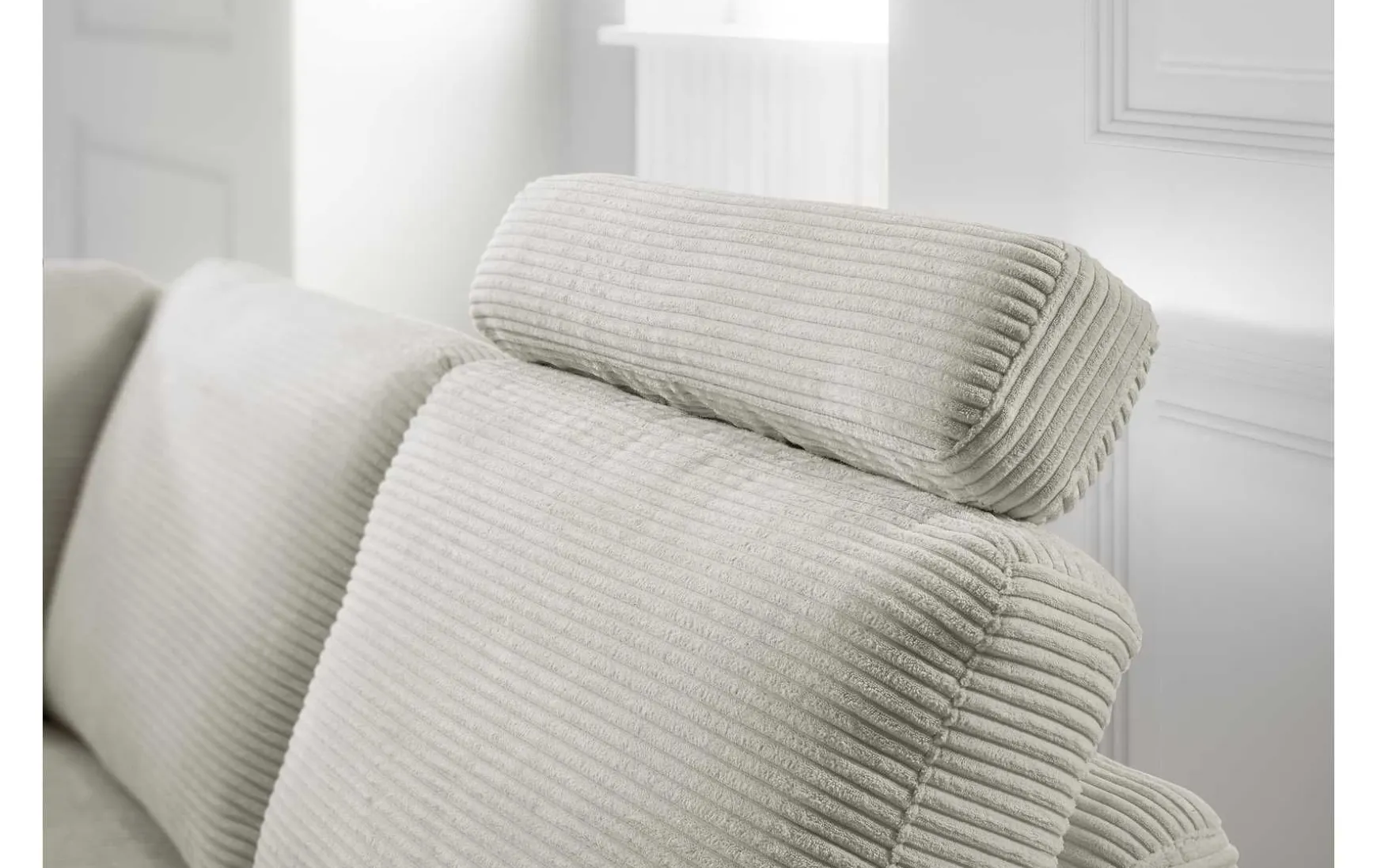 - Trendiger Cordbezug in Snow mit integrierter Stauraumfunktion