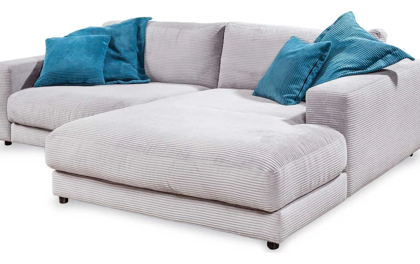 Diese moderne Polsterecke in elegantem Cord Grey bietet großzügigen Platz zum Entspannen und Wohlfühlen. Mit ihrem klaren Design, der bequemen Polsterung und der echten Rückenbezugsqualität eignet sie sich ideal auch für frei stehende Platzierungen im Wohnraum. Die angenehme Sitztiefe sowie die weiche Cord-Oberfläche sorgen für hohen Komfort, während die L-Form optimale Raumnutzung ermöglicht. Dank individueller Konfigurationsmöglichkeiten lässt sich die Polsterecke perfekt an persönliche Wohnbedürfnisse anpassen.