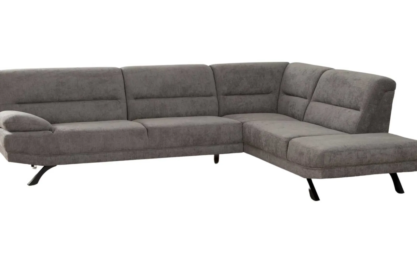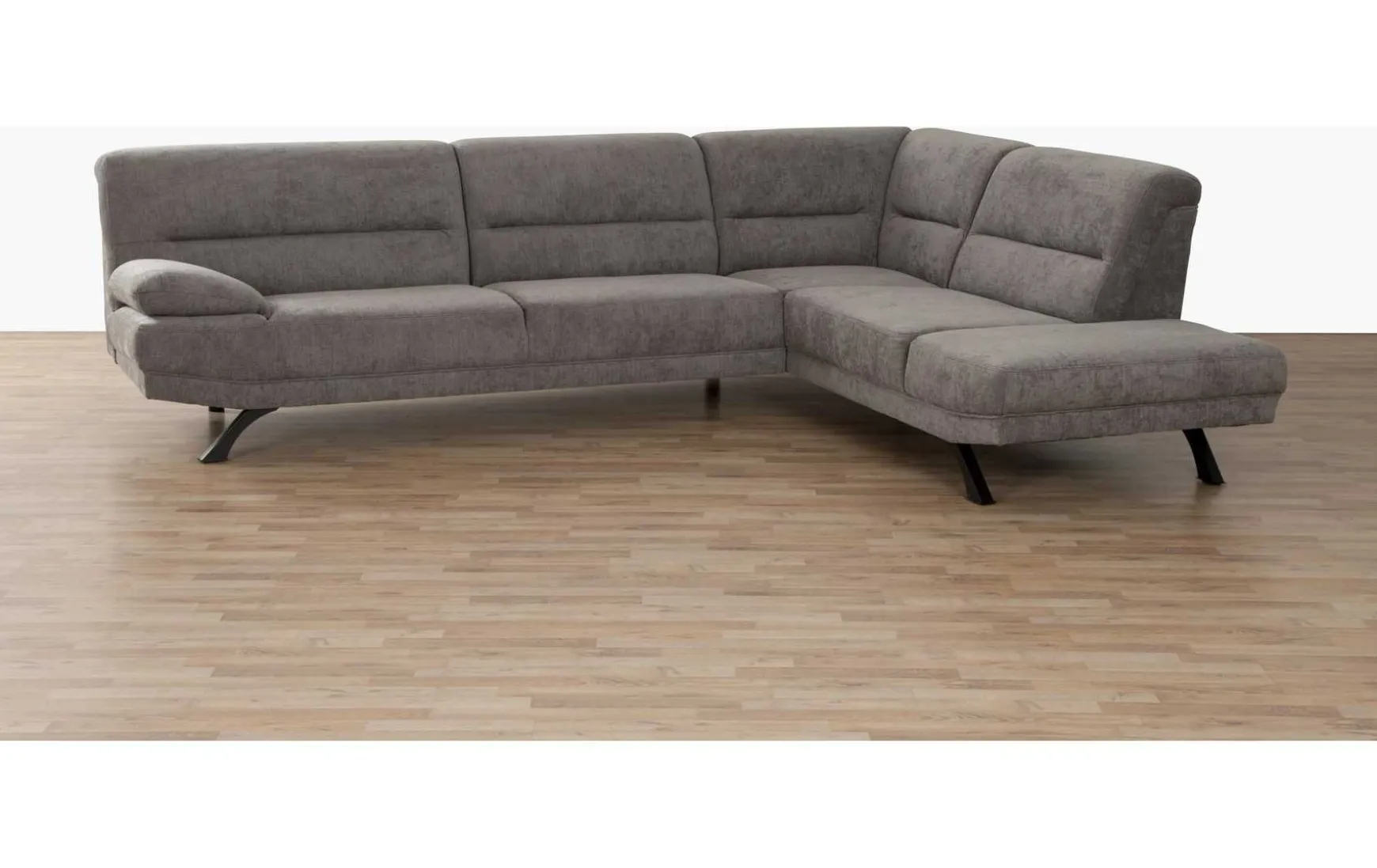 Moderne Polsterecke in L-Form mit echt bezogenem Rücken und hochwertiger Kaltschaum-Polsterung. Stilvoller Stoffbezug in Grau-Braun und stabile schwarze Metallfüße runden das Design ab. Maße: Breite ca. 293 cm, Schenkel rechts ca. 228 cm, Höhe ca. 83 cm, Sitzhöhe ca. 41 cm. In weiteren Farben erhältlich – ideal für modernes Wohnen.