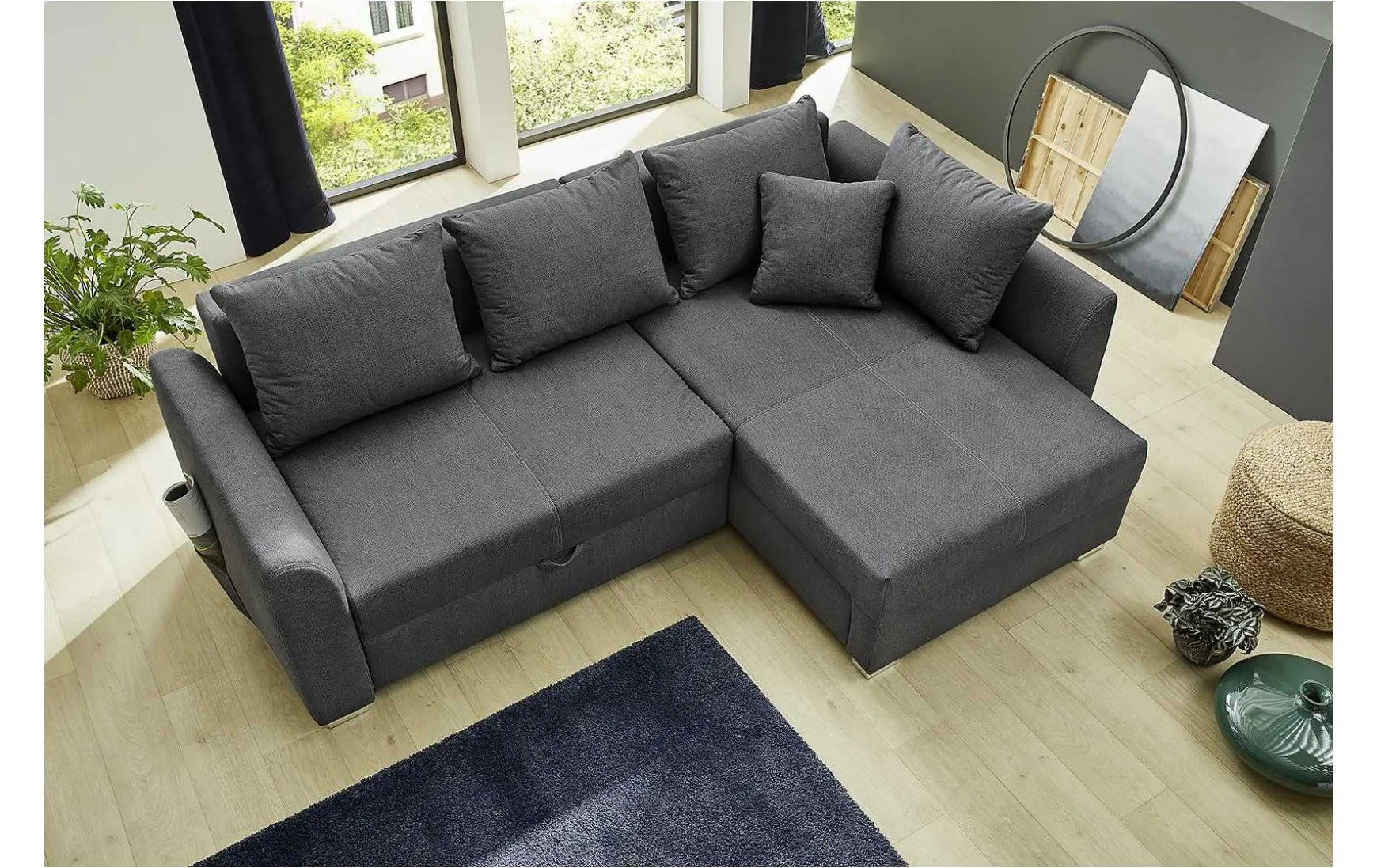 Nach einem anstrengenden Tag werden Sie durch eine Polyätherschaumpolsterung mit einem angenehmen Liegekomfort aufgefangen und möchten dank der inklusiven 4 Rückenkissen und dem Zierkissen nicht mehr aufstehen. Für spontane Übernachtungen lässt sich die Polsterecke mit wenigen Handgriffen in ein Gästebett mit einer Liegefläche von ca. 201 x 146 cm verwandeln, wobei die Bettgarnitur ganz praktisch in dem großen Bettkasten der Ottomane unterhalb der Sitzfläche gelagert werden kann.